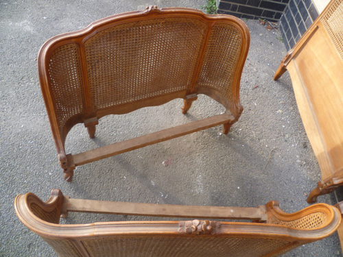 Pair of louis xv style french demi corbeille cane 3ft beds