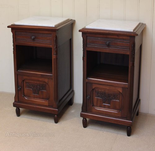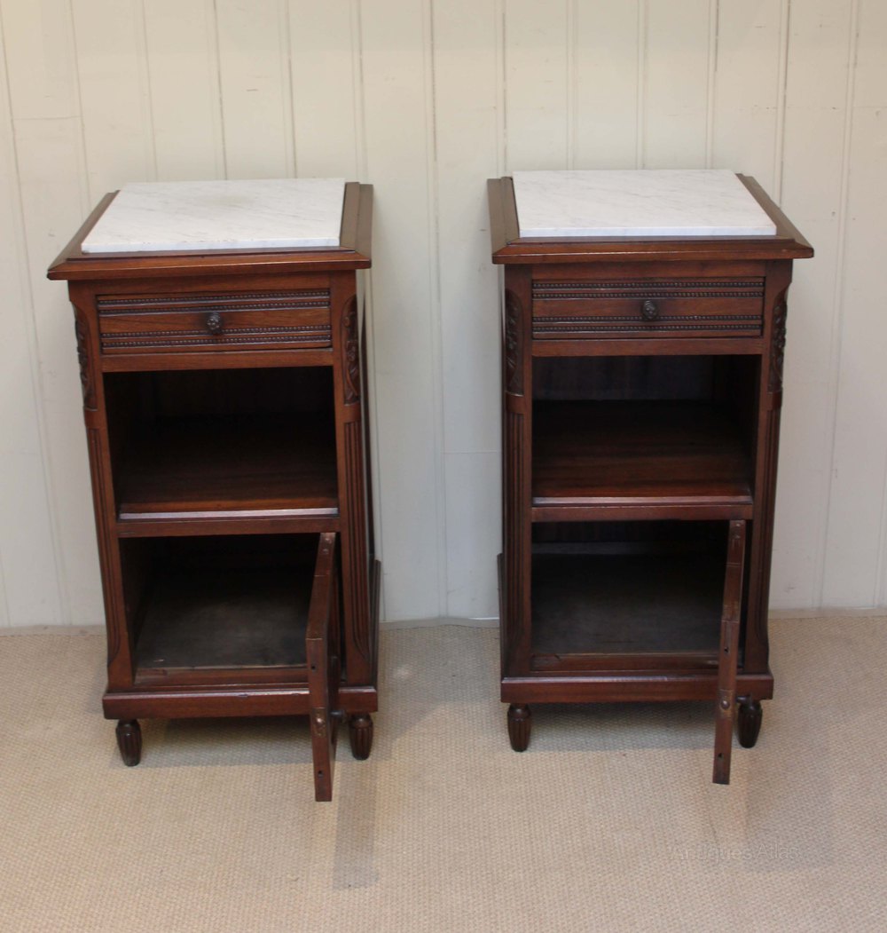 Pair Of French Mahogany Marble Top Bedside Cabinet
