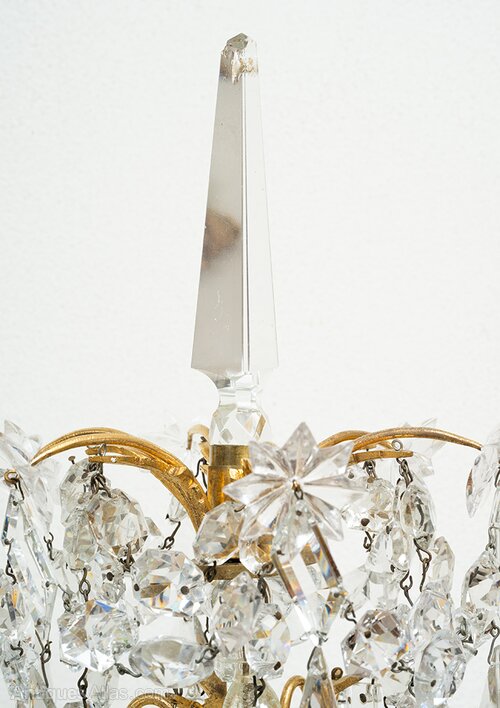 The entire structure is enriched by the presence of Bohemian crystal pendants contemporary with the bronze structure.