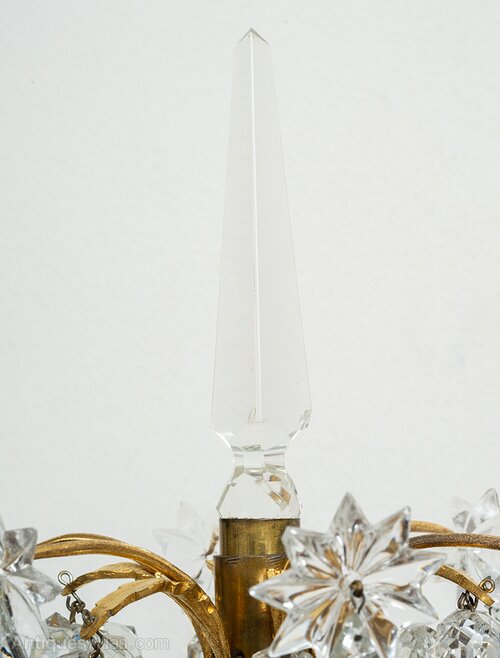 Pair of Girandoles in gilded bronze and crystal.