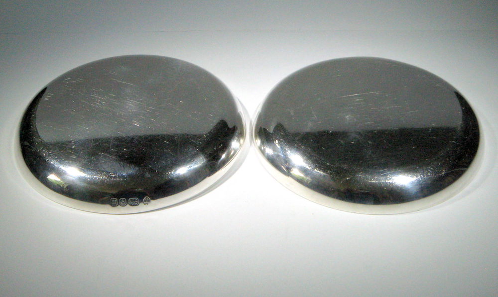 Good pair of heavy Vintage silver wine bottle coasters, of stylish plain design with simple curved rims.