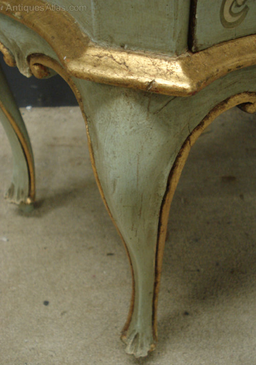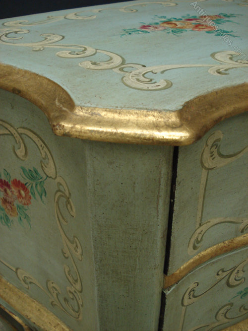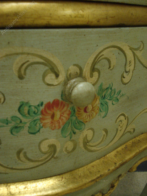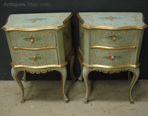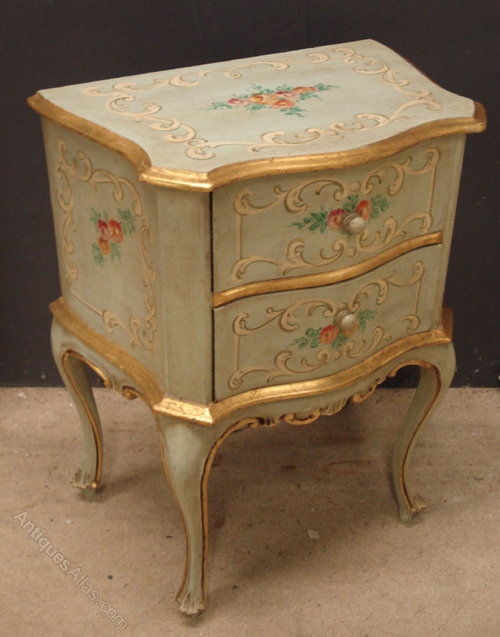 Ref 4008 - Pair of Italian two drawer cabinets in original paint finish with gilt highlights. Circa 1950