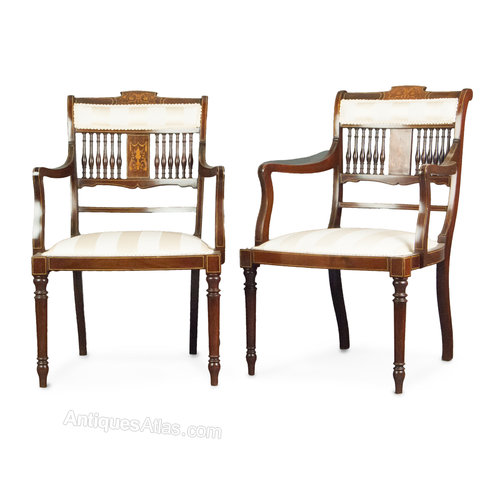 Pair of Mahogany & Inlaid Elbow Chairs