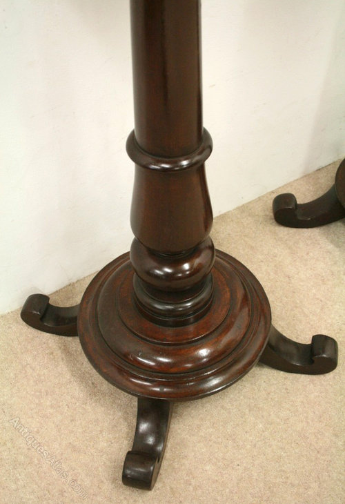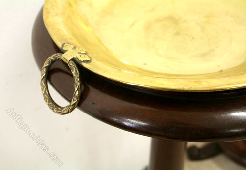 Circa 1880, top quality pair of mahogany and brass stands. The tops of the stands have scooped interiors to retain the removable brass inserts which have stylish lifting handles. All standing on turned columns on a set of unusual quadruple splayed legs.