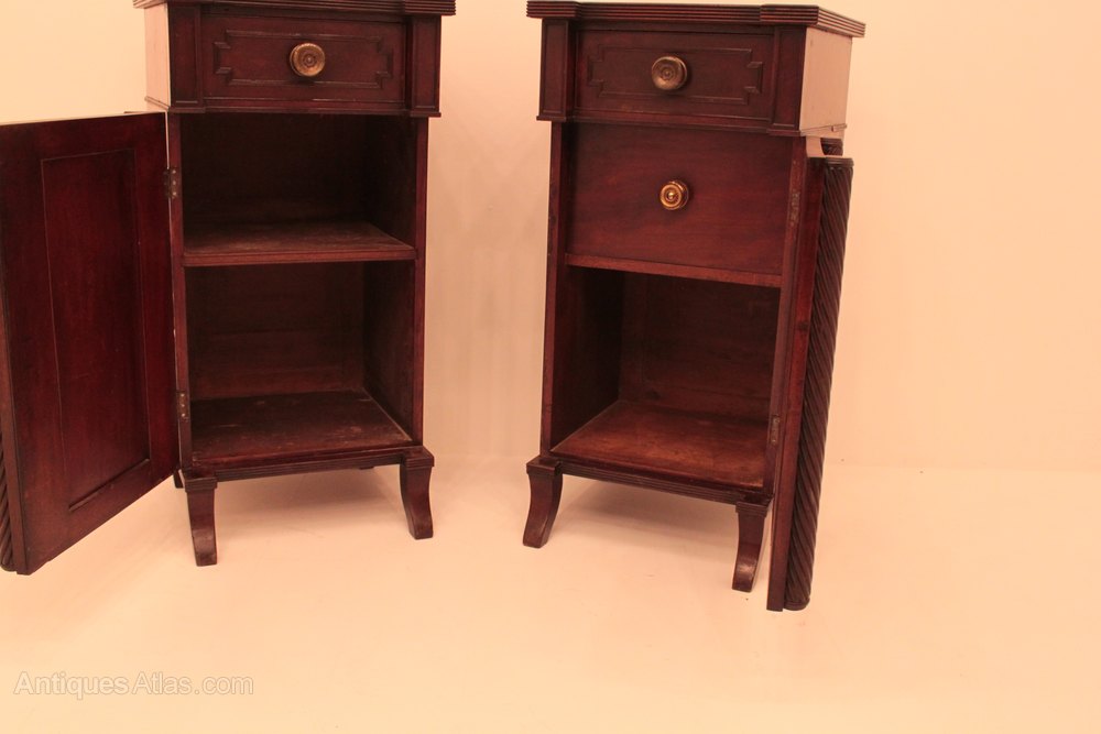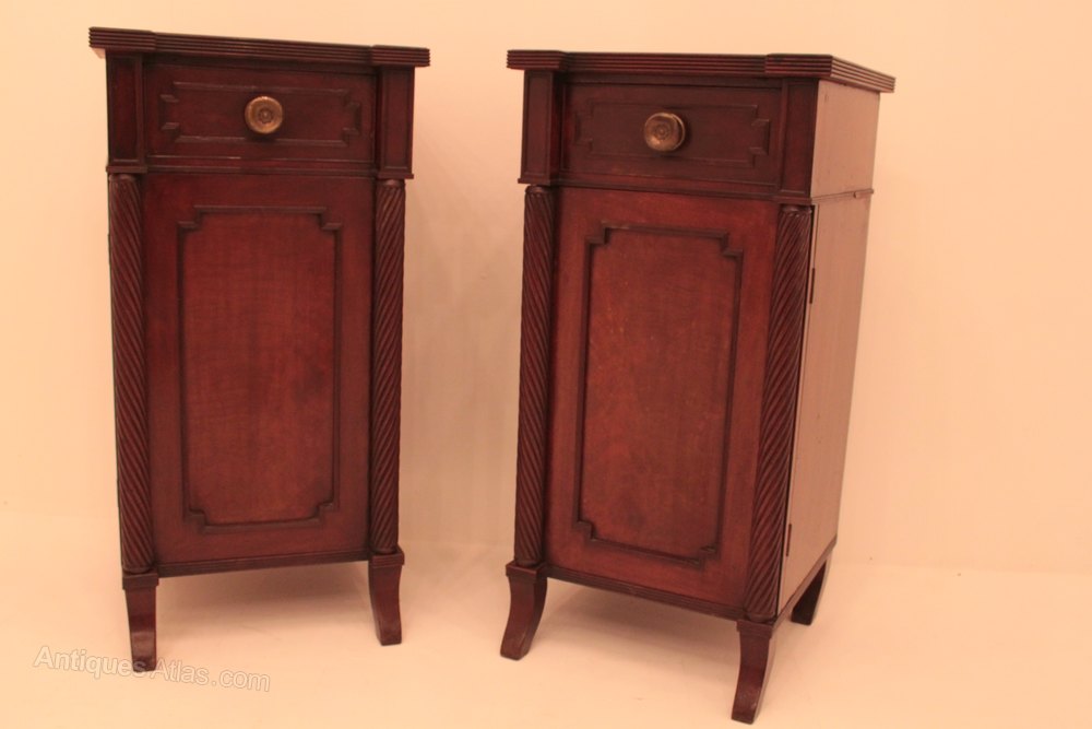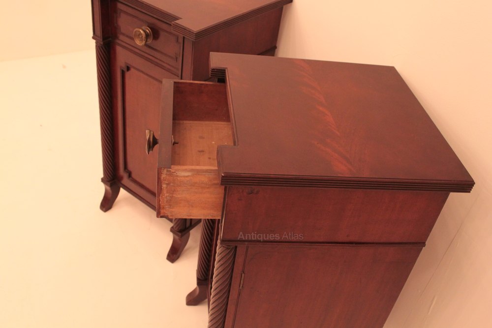 Each having one drawer to top the right hand Urn stand having an interior drawer. Nicely figured tops with a reeded edge. These pieces are probably Scottish.
