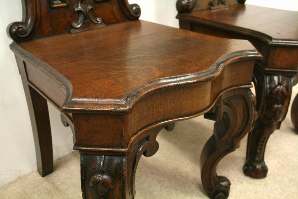 Pair of Mid Victorian Oak Hall Chairs