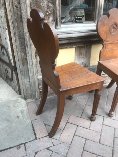 19thC Pair of Oak hall chairs