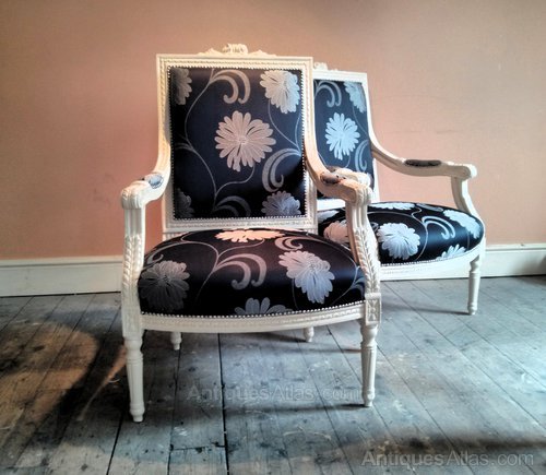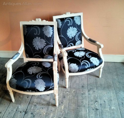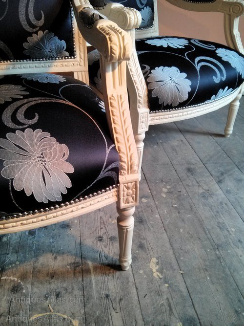 Pair of superb quality French armchairs. Newly painted in a matte cream finish.