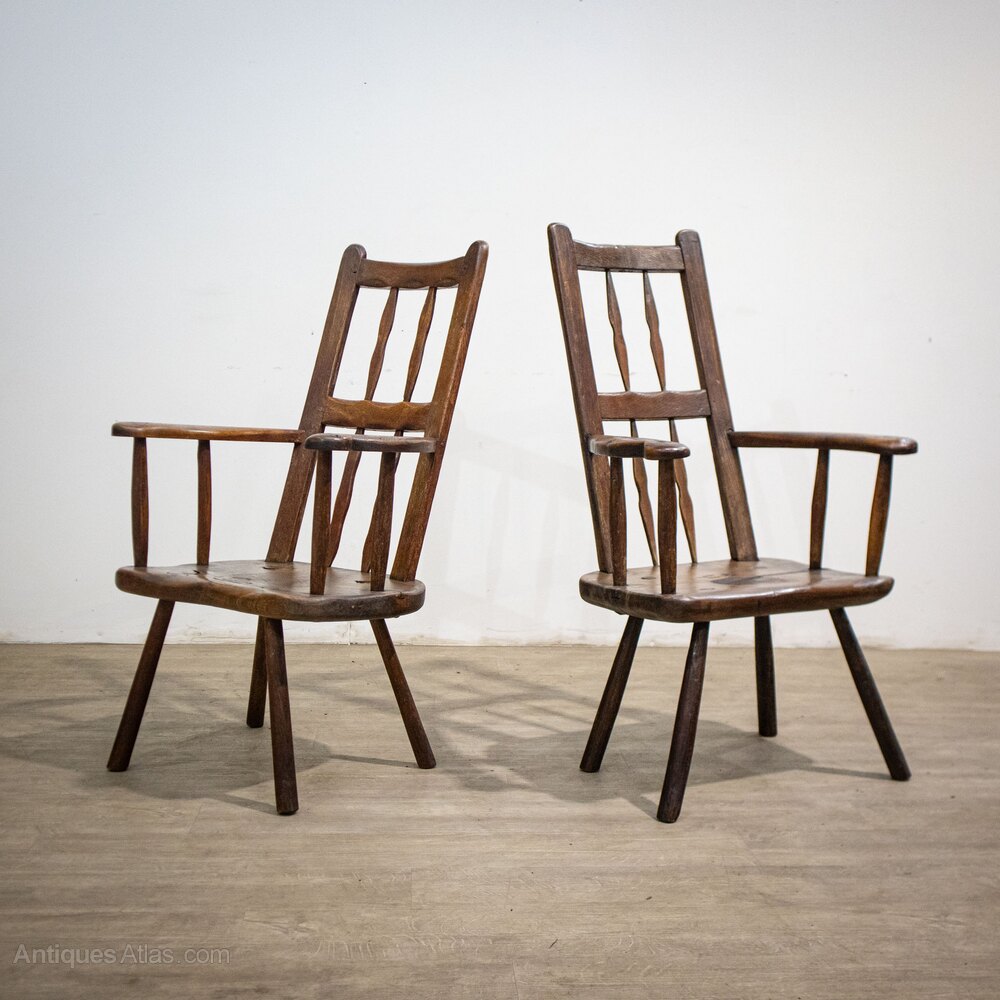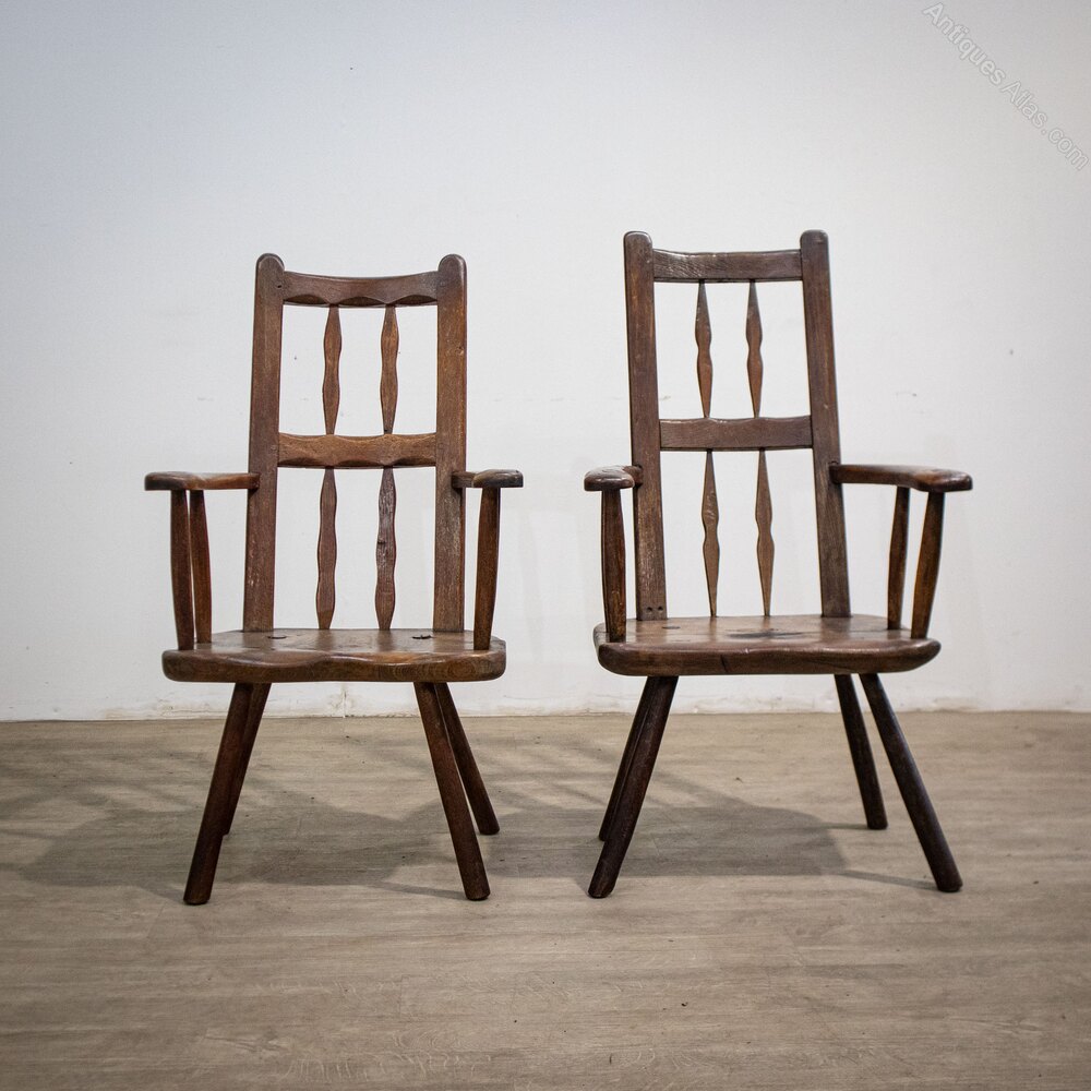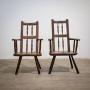 A pair of oak 19th century chairs with a primitive look and feel.