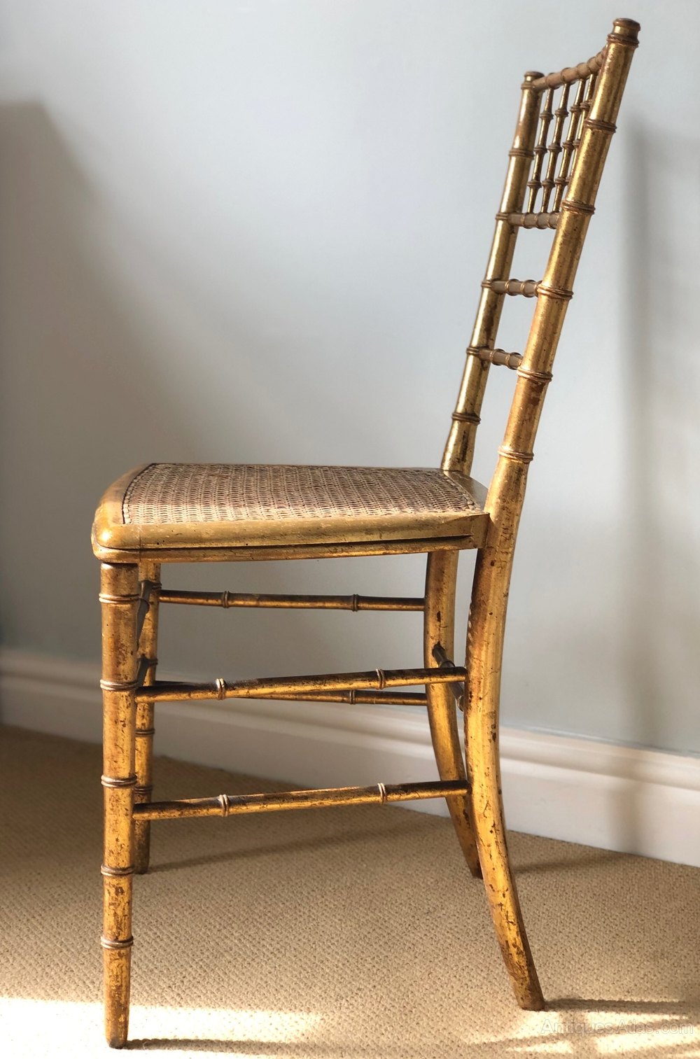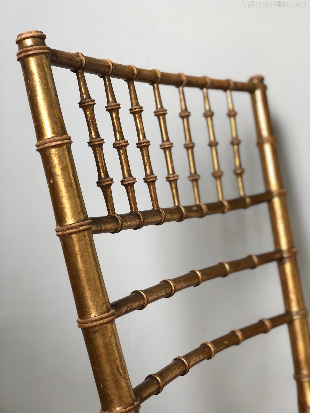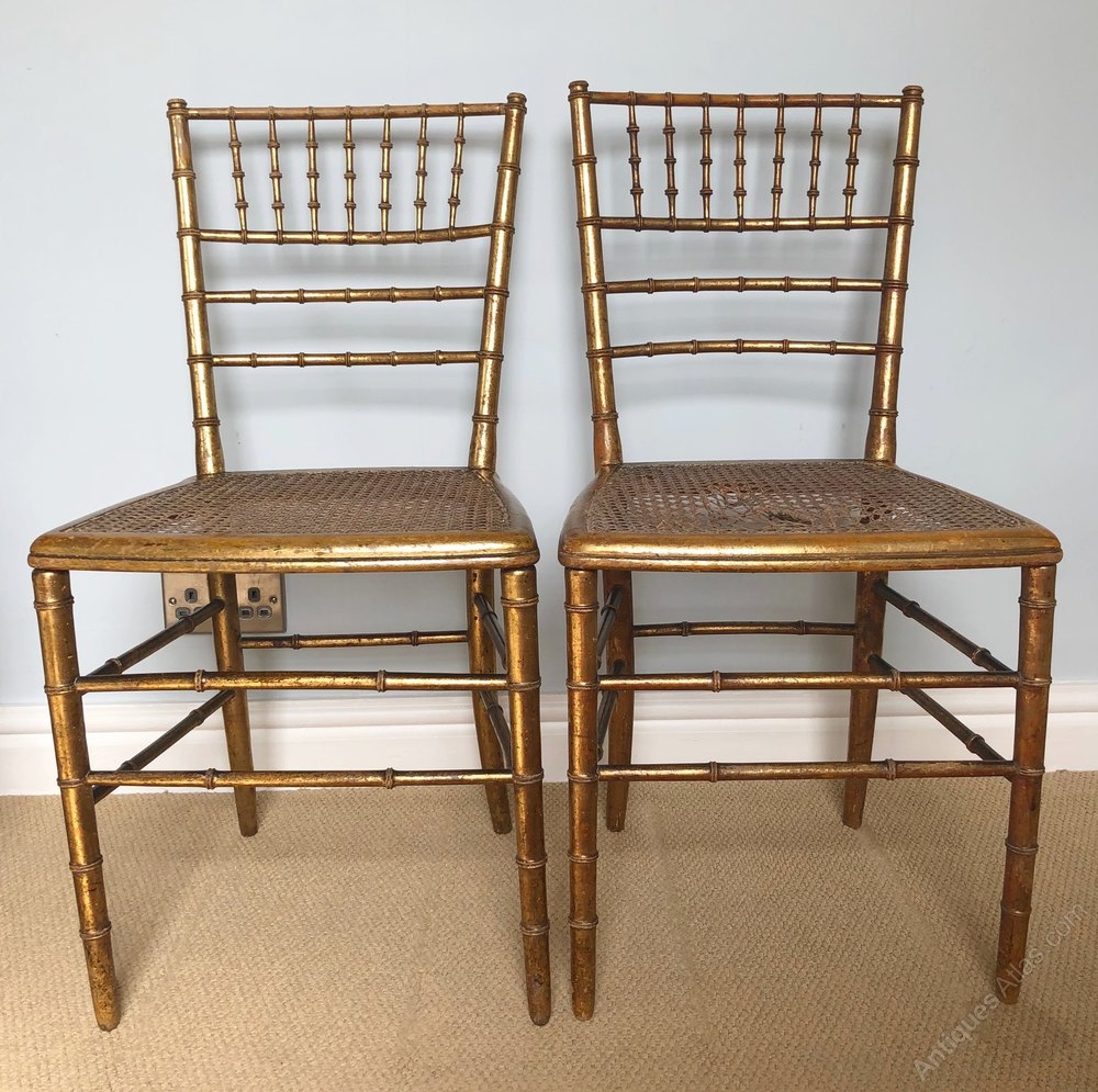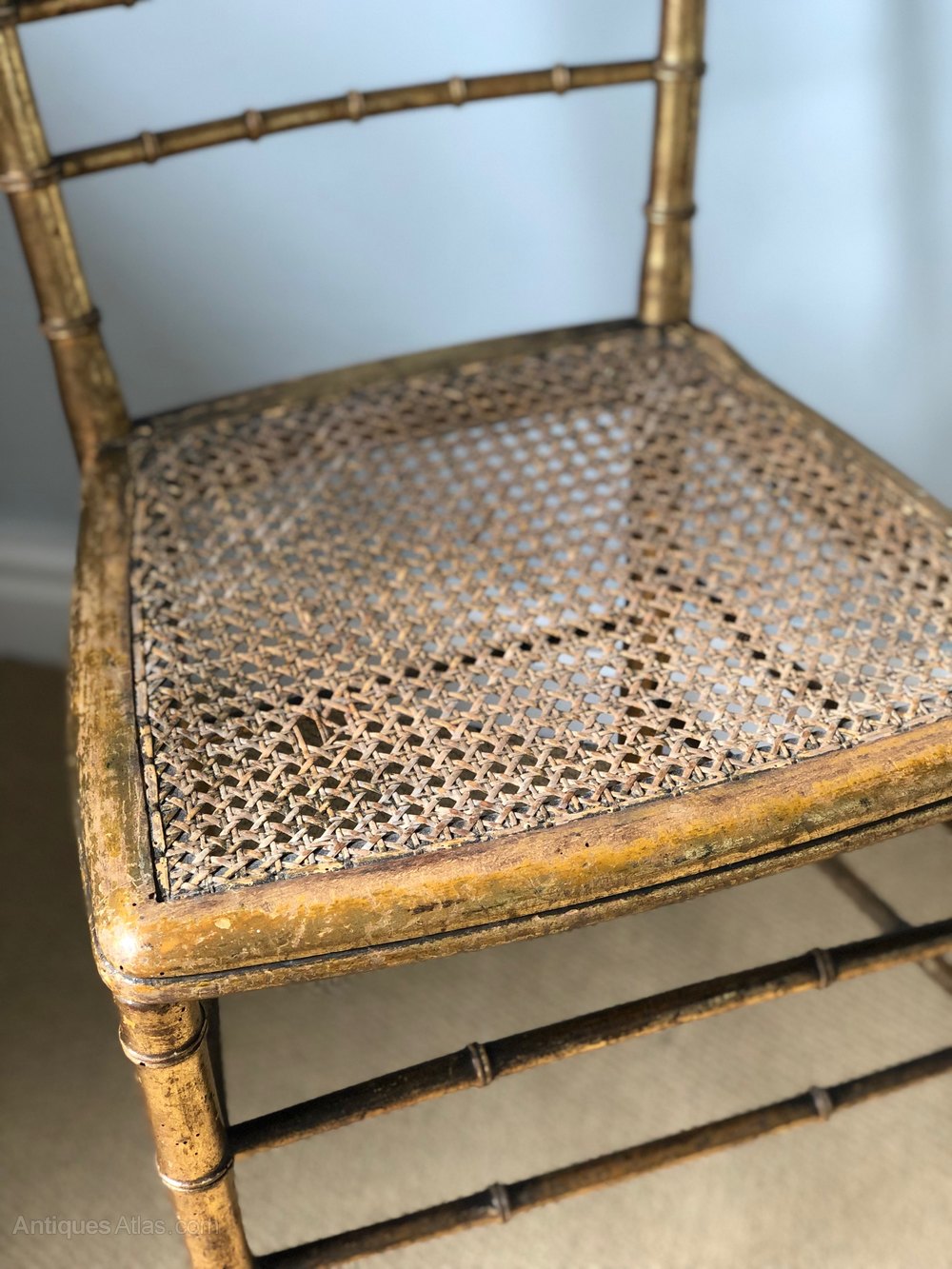 Pair of Regency Antique Gilt Faux Bamboo Side Chairs.