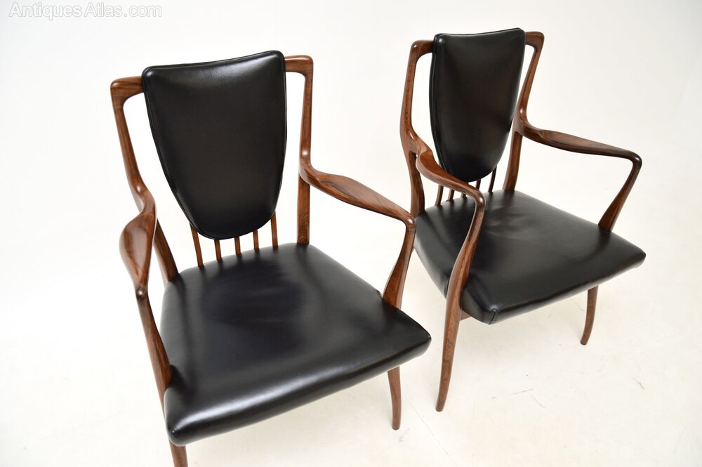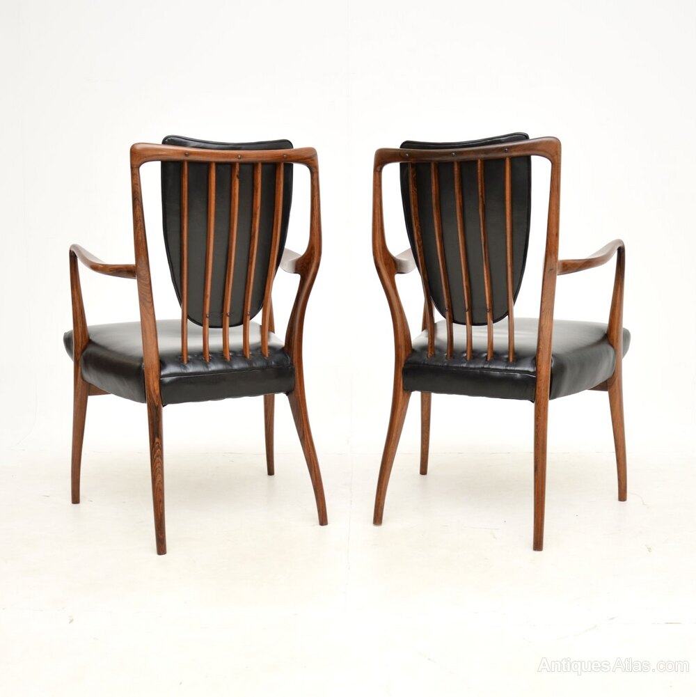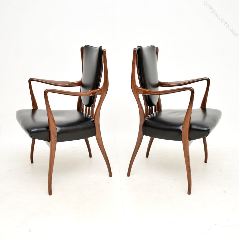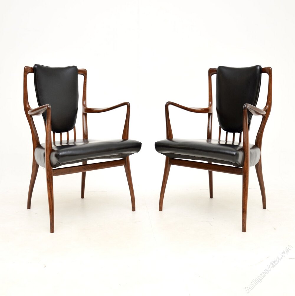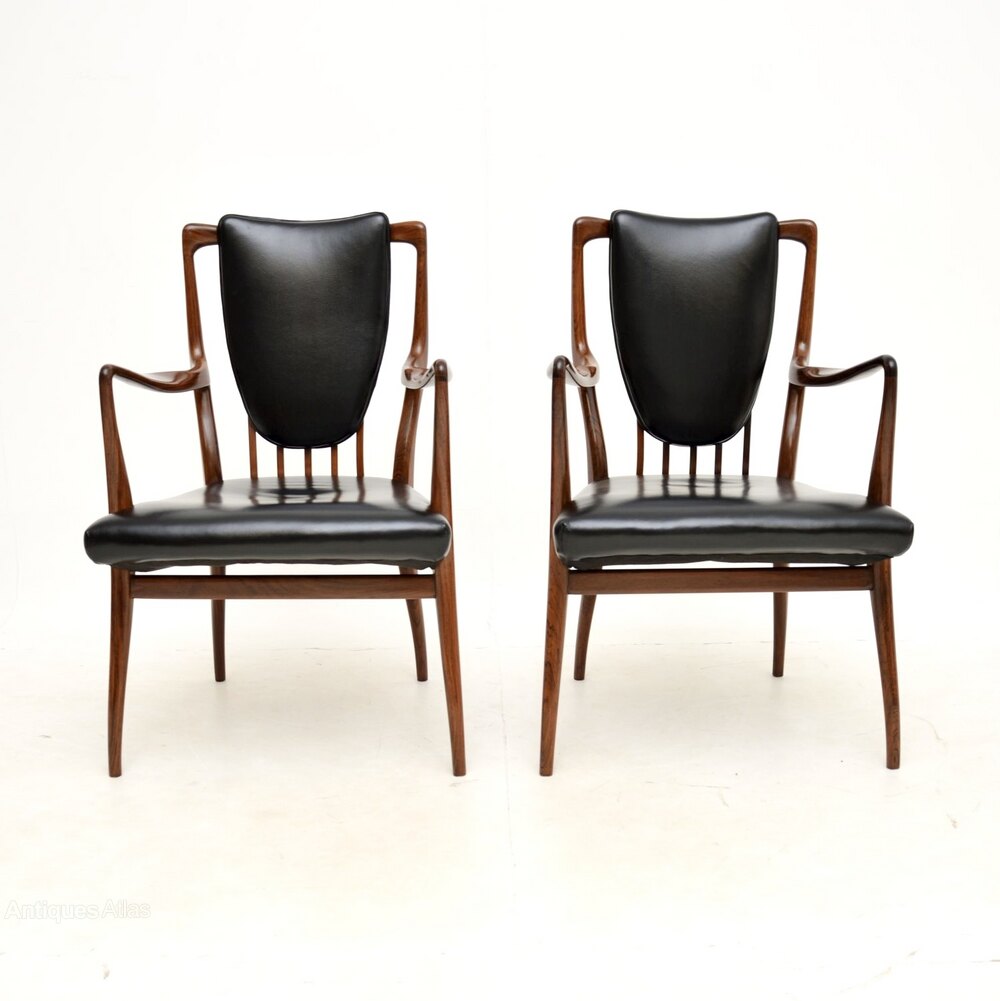 An absolutely stunning and very rare pair of rosewood and leather armchairs by Andrew Milne. They were designed in the 1940’s for Heal’s, this pair dates from the 1950’s.