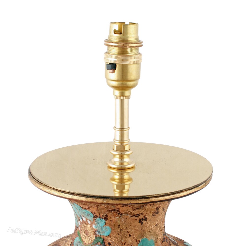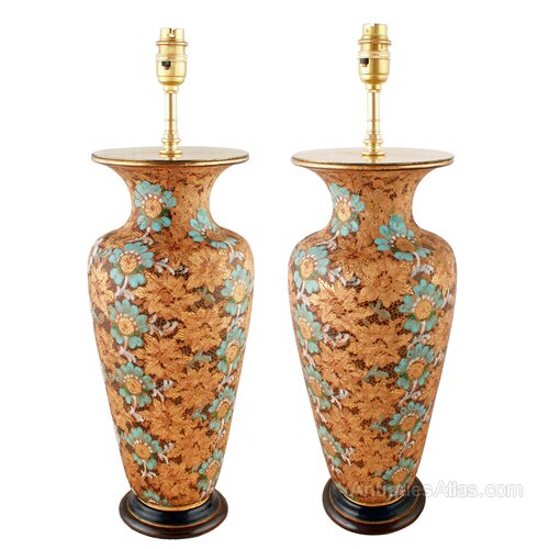 A pair of Edwardian "Salters Patent" Royal Doulton vase converted into table lamps.