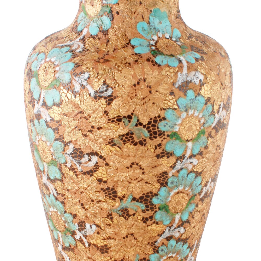 The pottery vases are profusely decorated with flowers and highlighted in gilt.