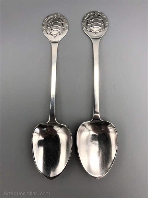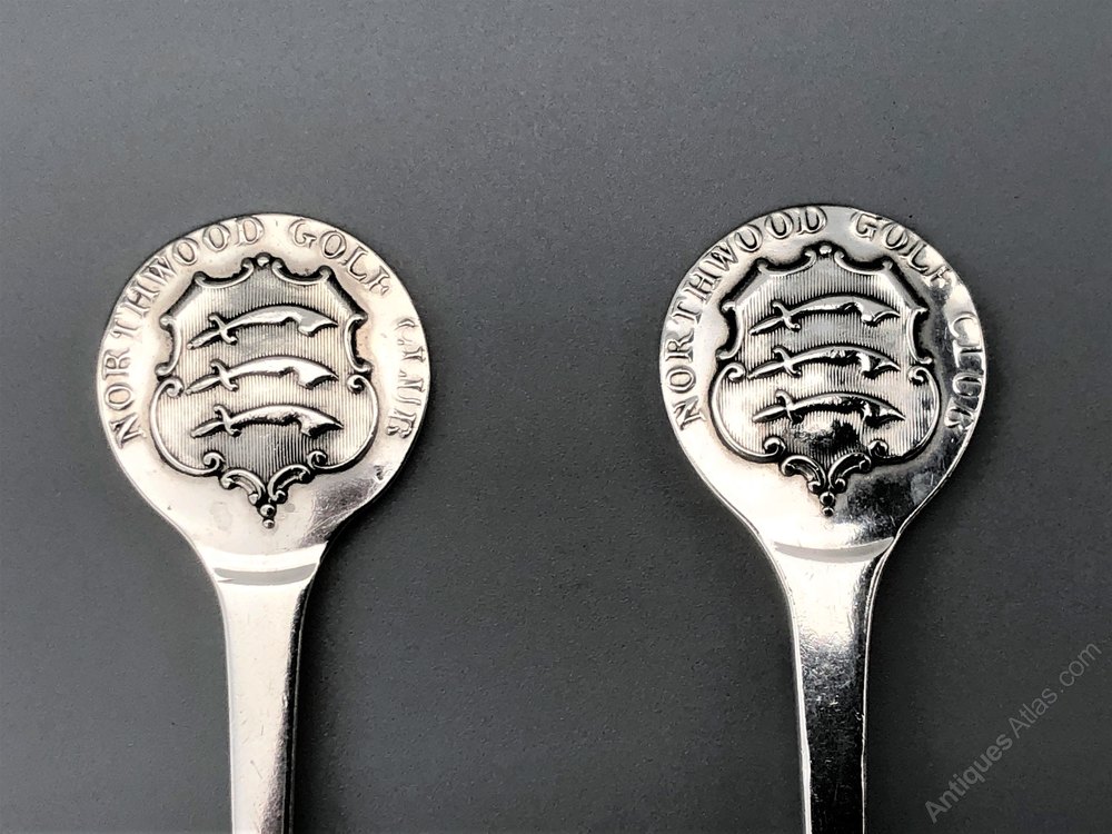 There are many examples of Golf Club spoons from the 1920s and 1930s but Victorian pieces are much rarer. Northwood Golf Club was founded in the Middlesex town of the same name in 1891, so the spoons were created not long after this, most probably for use in the club house.
