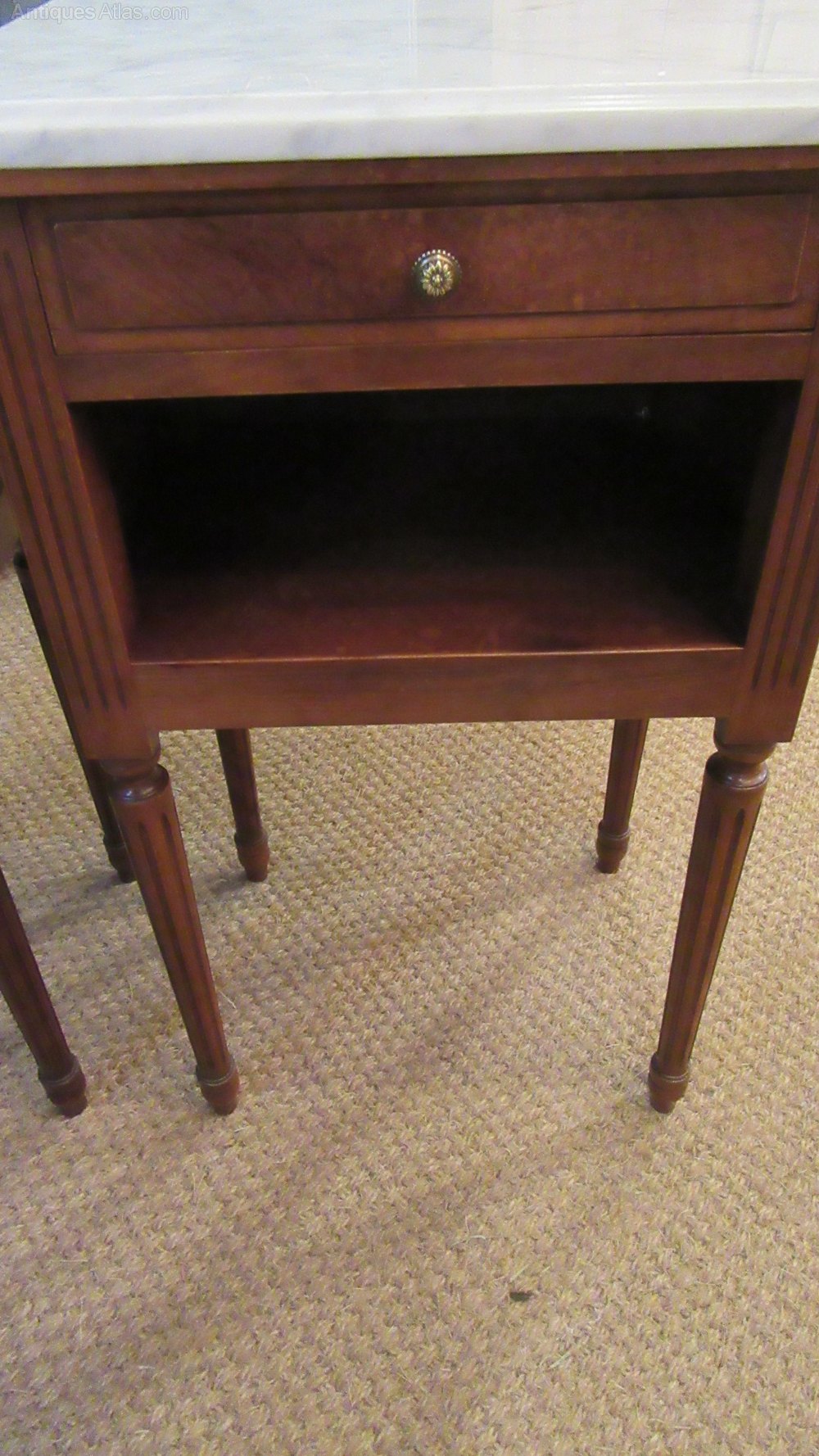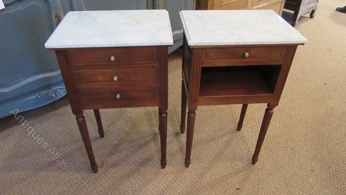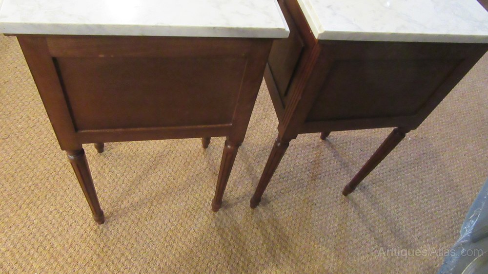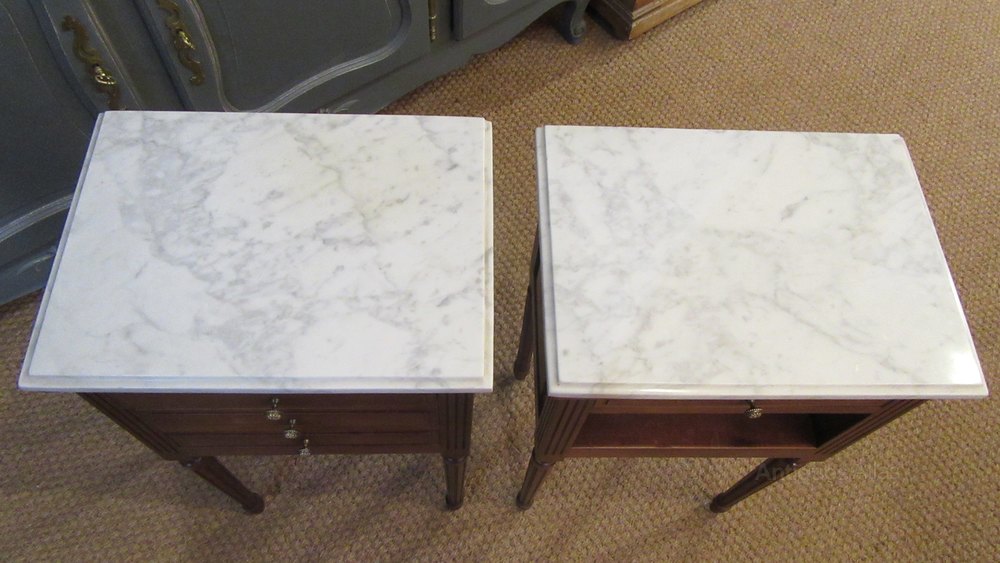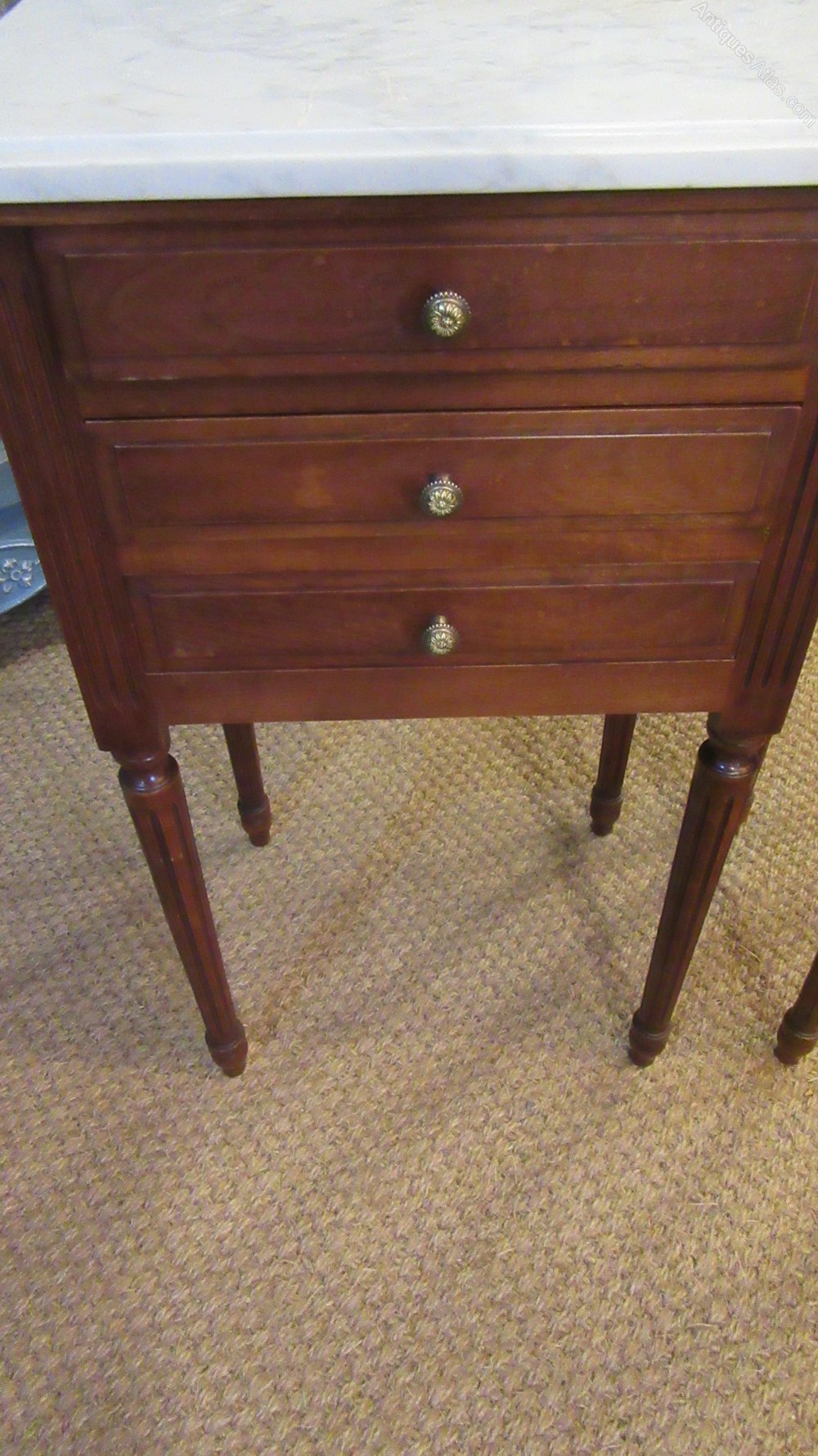 Pair Of Vintage French Bedside Chests with Marble Tops 70 cm high 73 cm wide 44 cm deep