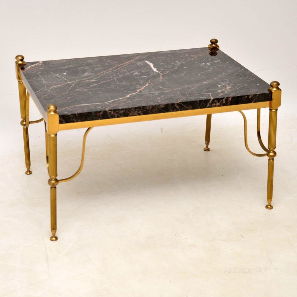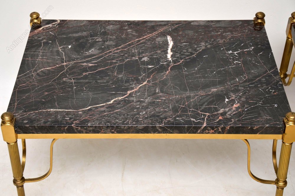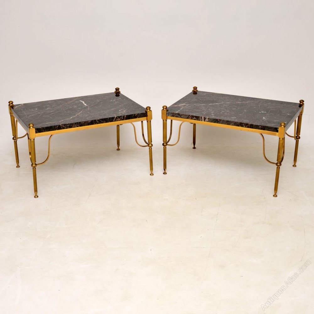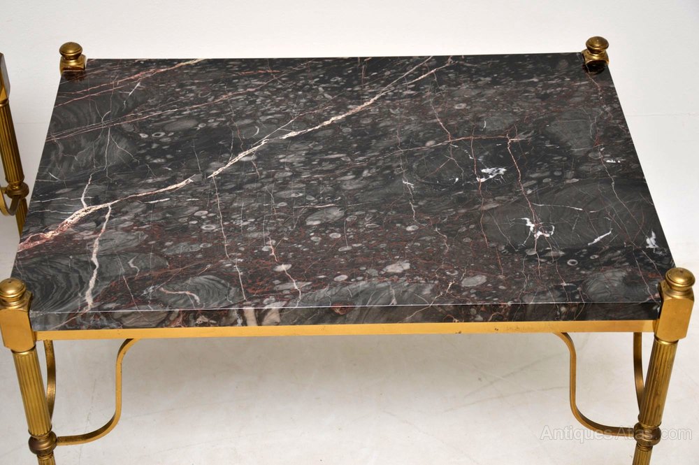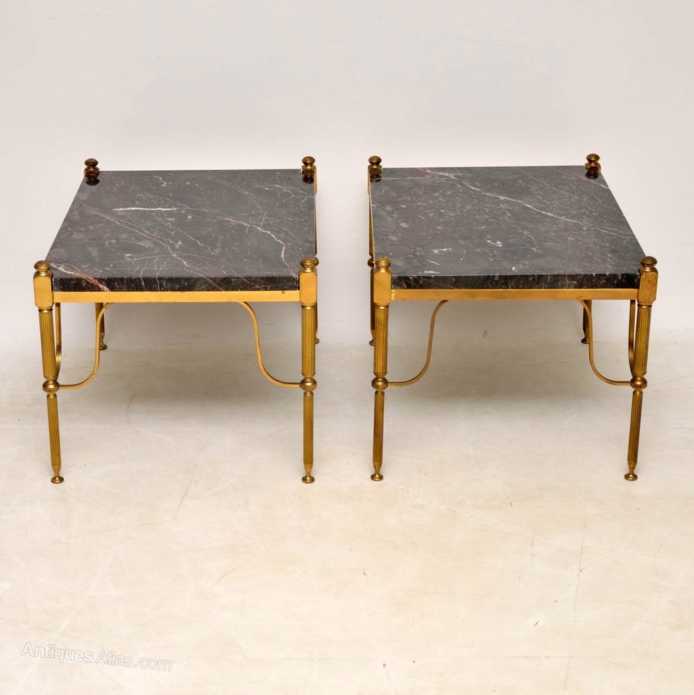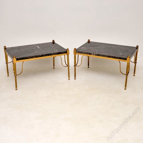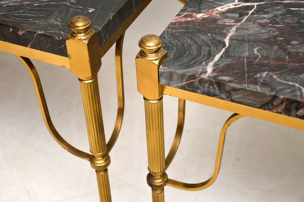 A stunning and extremely well made pair of vintage French side antique tables, these date from the 1950’s. They look stunning from all angles, with an elegant design and beautiful, thick marble tops. There is some light surface wear here and there, but overall these are in great condition for their age.