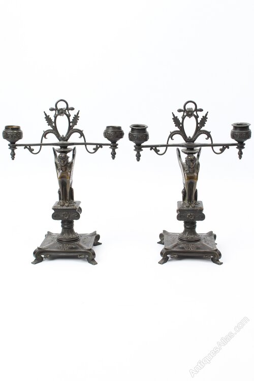 Pair Regency Egyptian Revival Bronze Candelabra