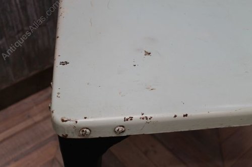 The tables can be used outside, but we will not guarantee them against rusting. They are in good condition for their age, but please be aware that they are vintage items, dating from the 1930s, and so will have dents, chips and signs of general wear and tear – which we feel only adds to their character and authentic appearance.