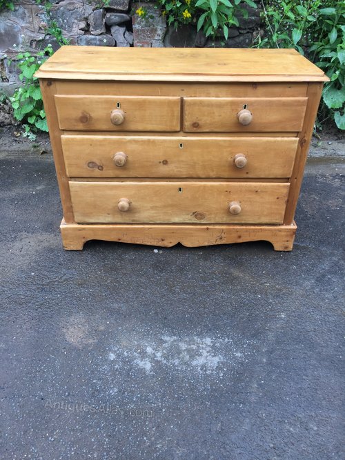 A clean small Victorian pine chest of drawers ,replacement knobs