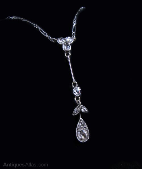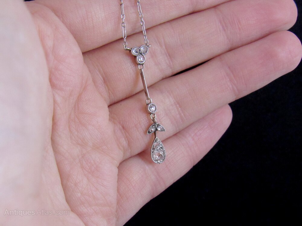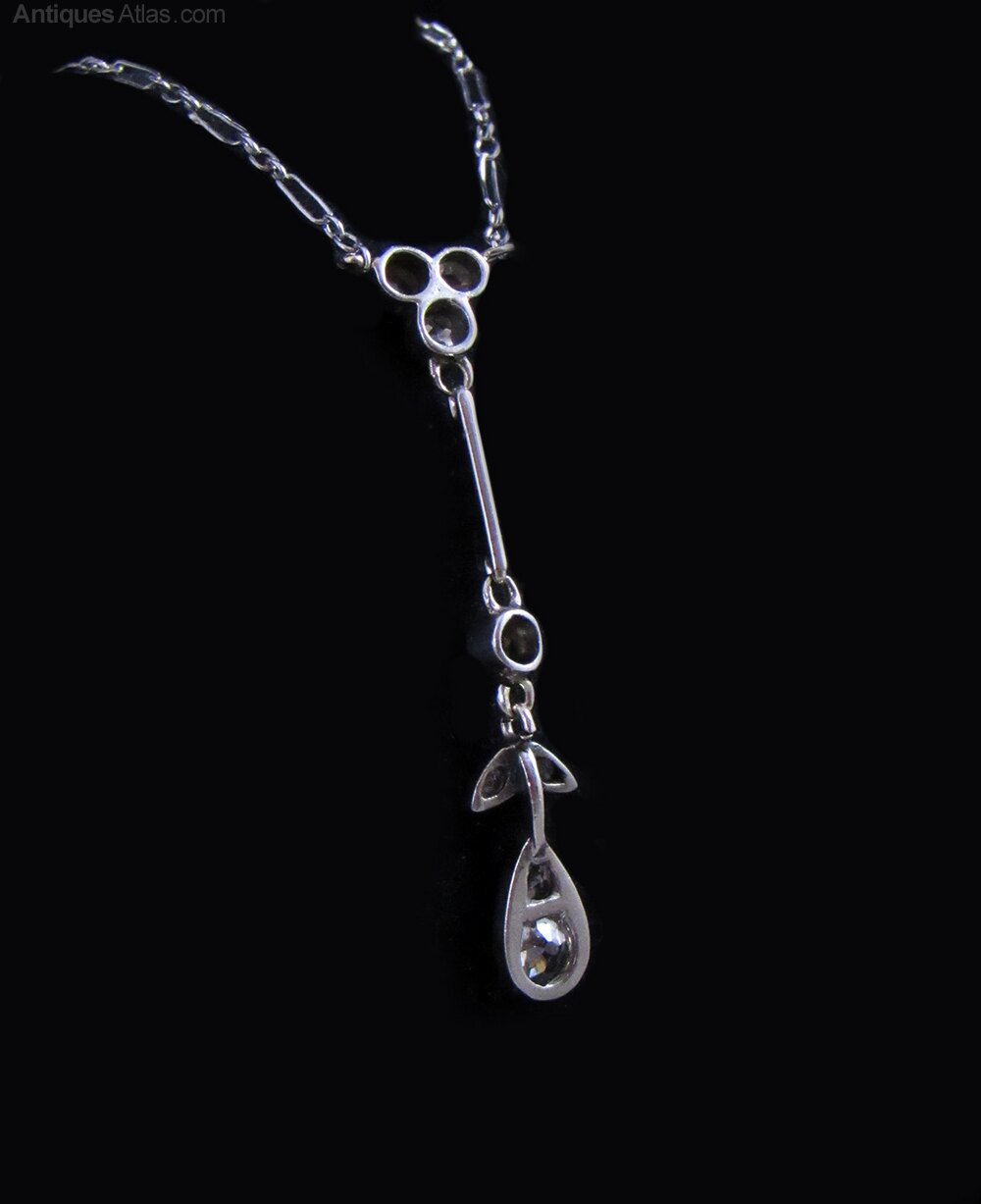 The chain stamped 950 for Platinum..The pendant sits very comfortably when worn and is a lovely, feminine and timeless piece of late Victorian, early Edwardian Art Nouveau jewellery made in c.1900.