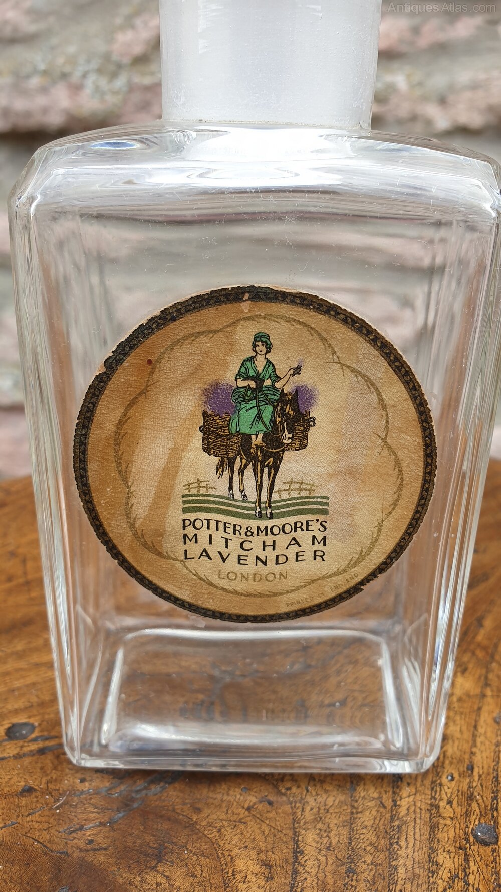 An attractive vintage Lavander perfume bottle with cut glass stopper. Potter & Moore are an English toiletry company dating back to 1749, specialising in Lavander. A pretty dressing table or collectors piece.