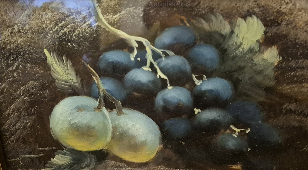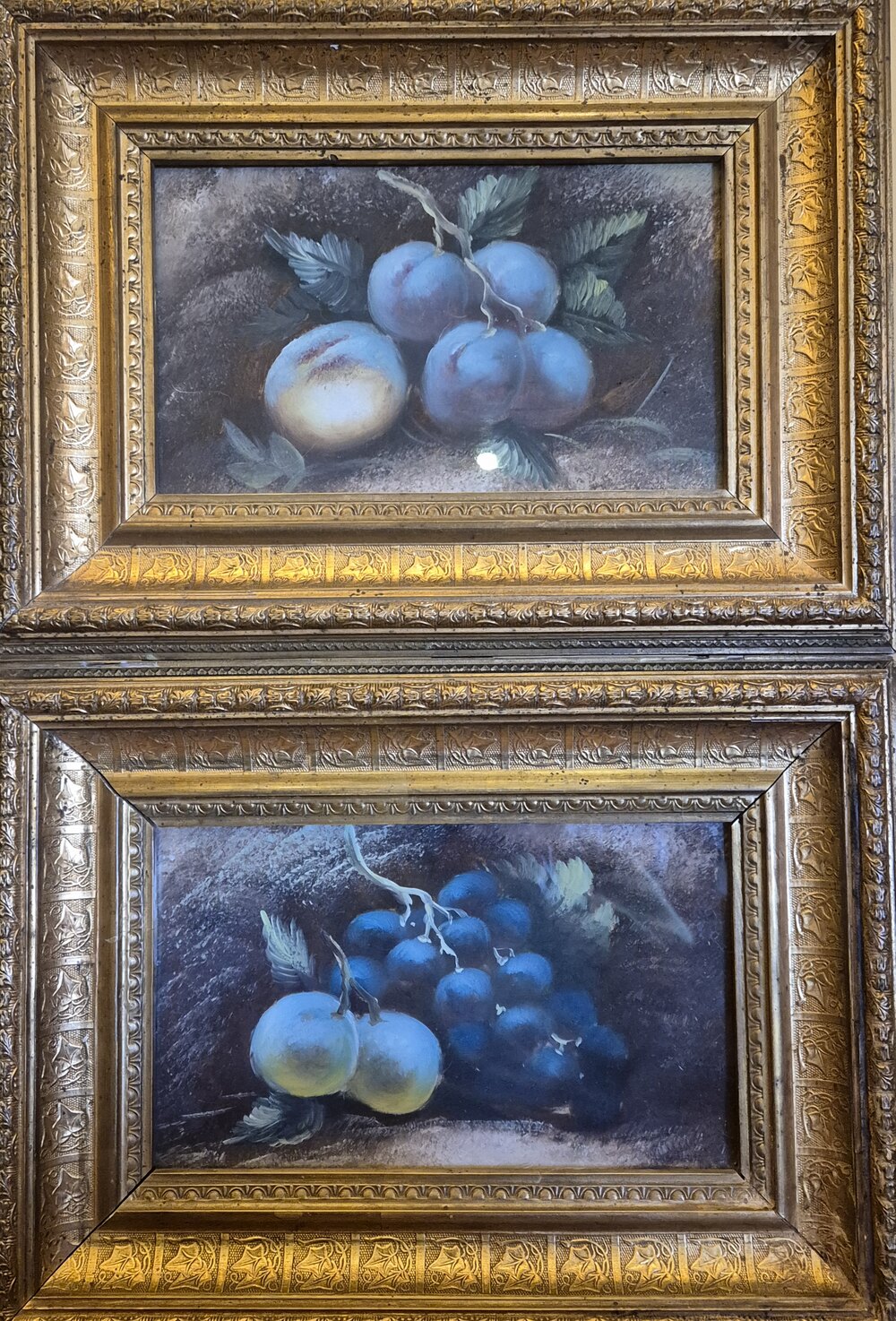 Pair Evelyn Chester 1875-1929 Gilt Framed and glazed Still Life oils of grapes and plums.