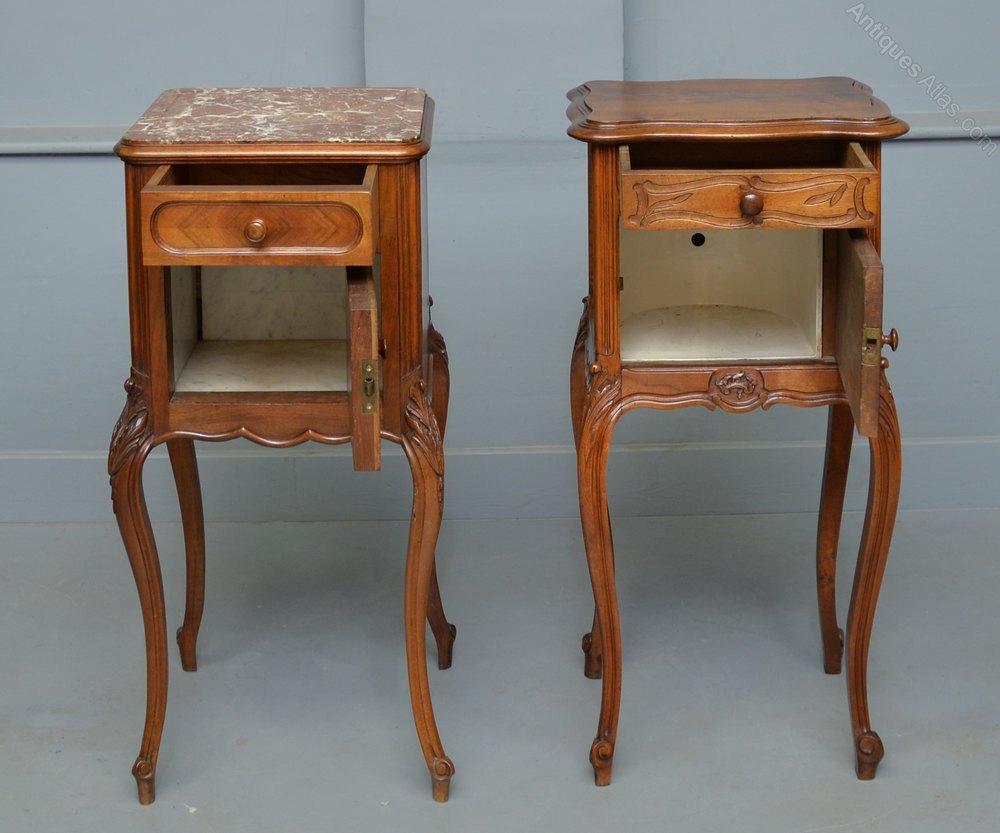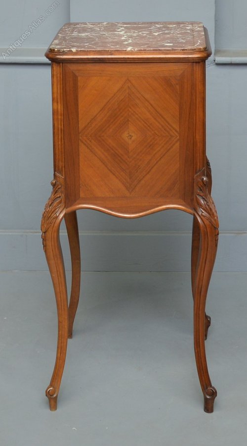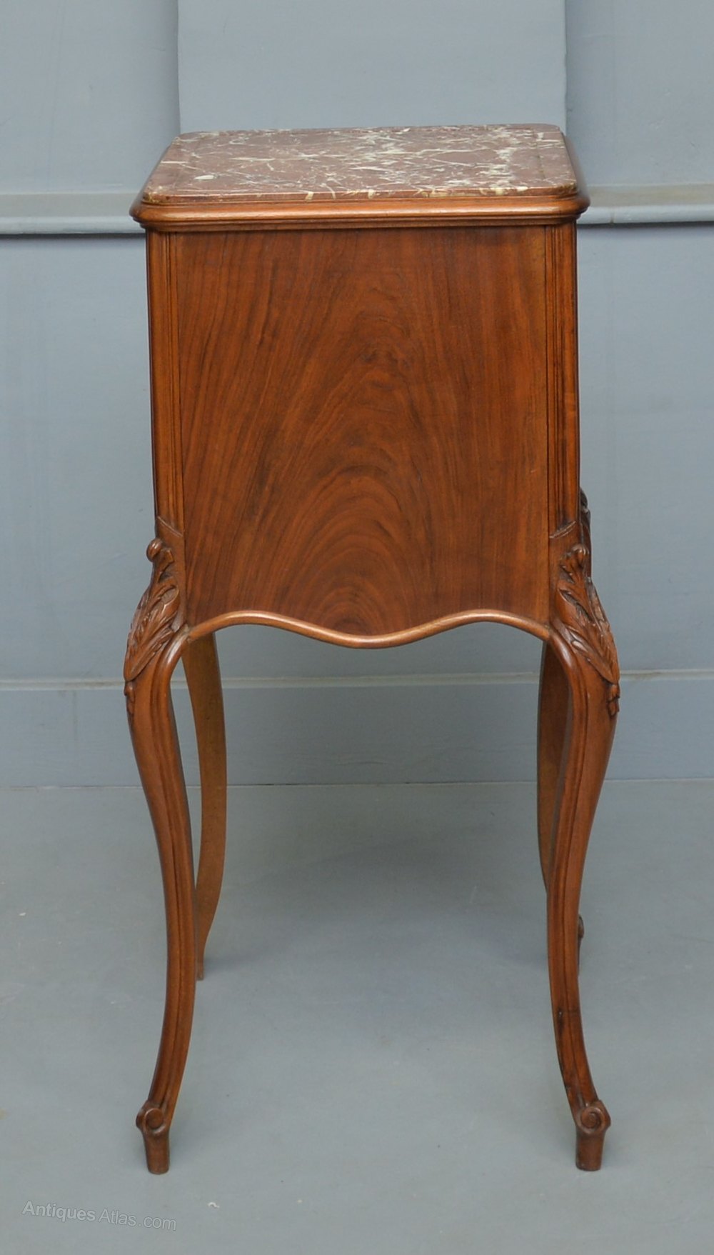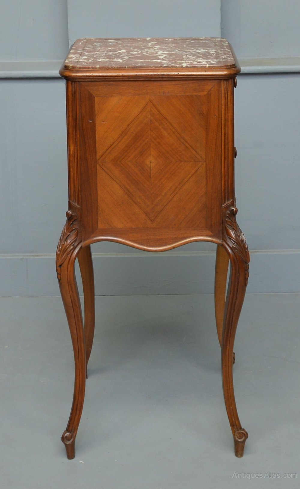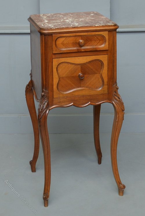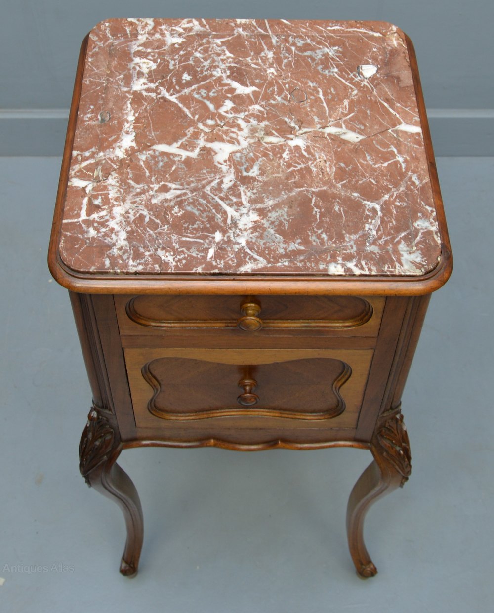 Pretty French Walnut Bedside Marble-Top Cabinet