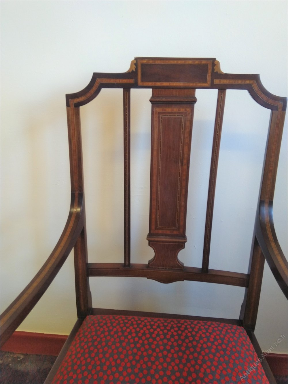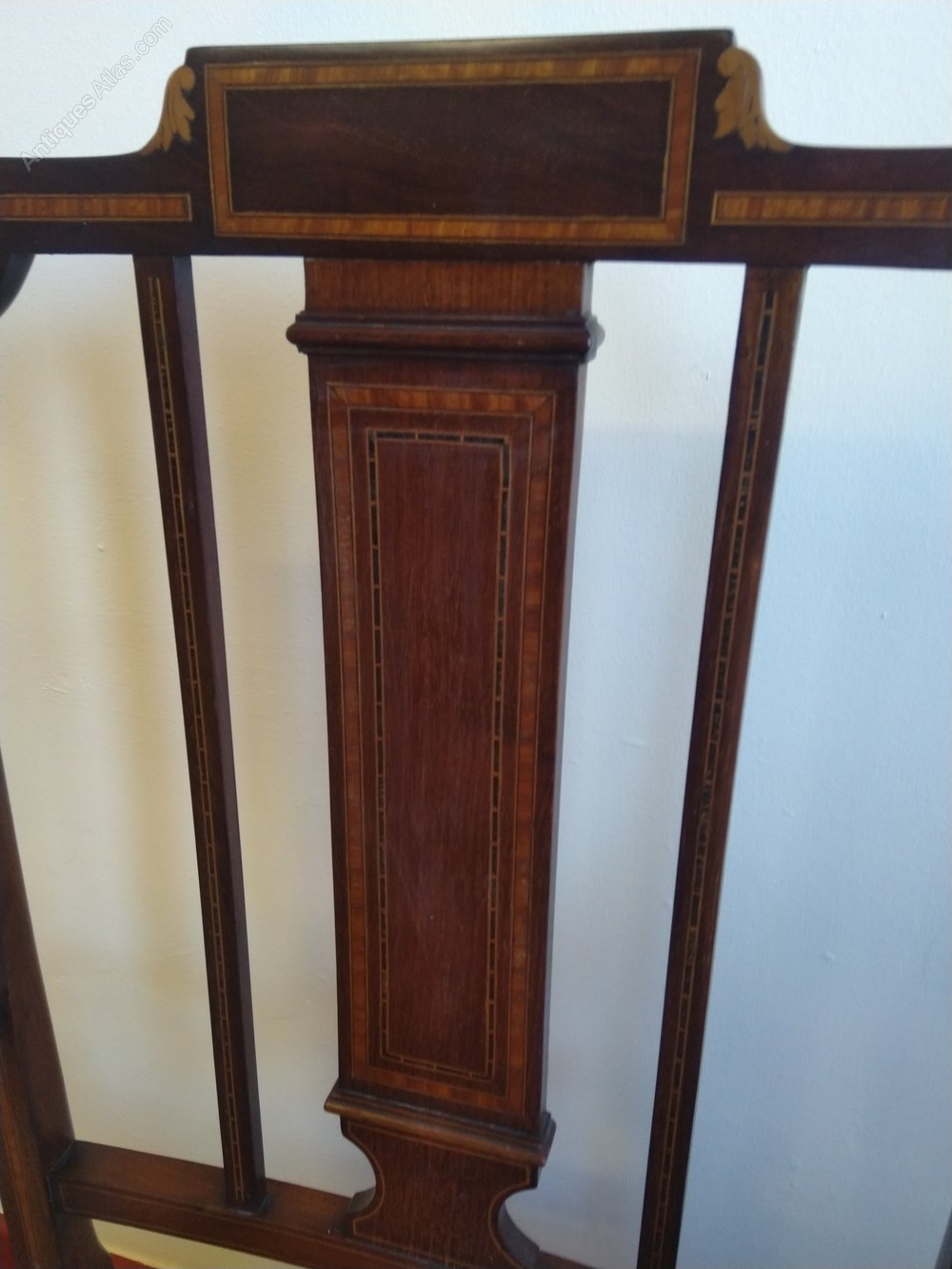 This pretty chair from the earky 1900s is lovely example. It has inlays in the rear splat down the legs etc, and even down the top of the arm. It is in good original condition, and we have rewaxed this to give a little lustre to the finish but that was all that was needed. The seat has been upholstered recently and is in good condition. A very nice attractive Edwardian chair that can go with a desk perhaps or in a bedroom or just to look good as an extra seat.