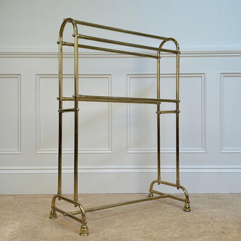 A rare 19th century brass towel rail in superb original condition throughout. Retaining the original lacquered finish, showing the perfect amount of wear. Circa 1880.