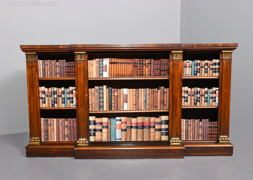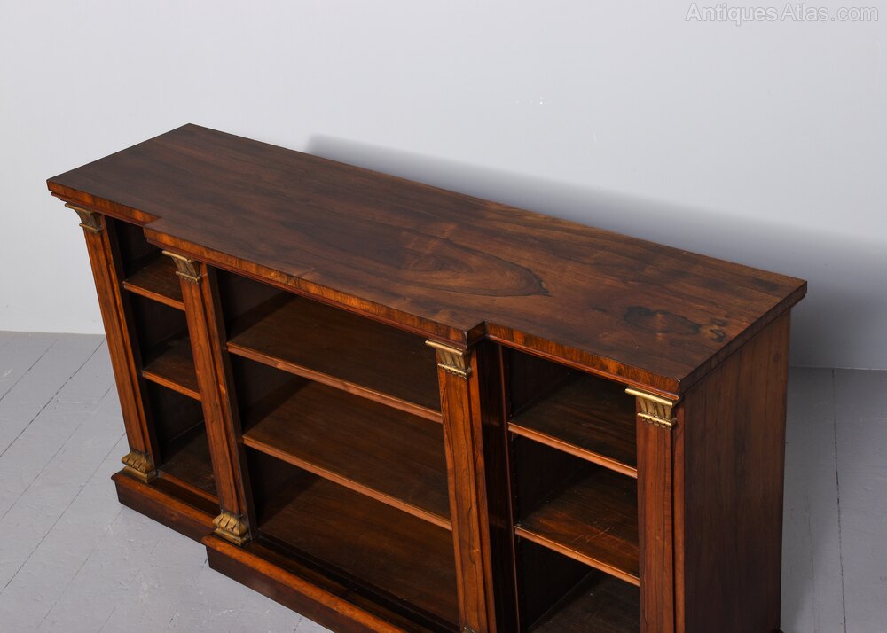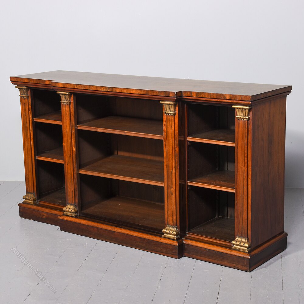 Rare breakfront Regency rosewood open bookcase