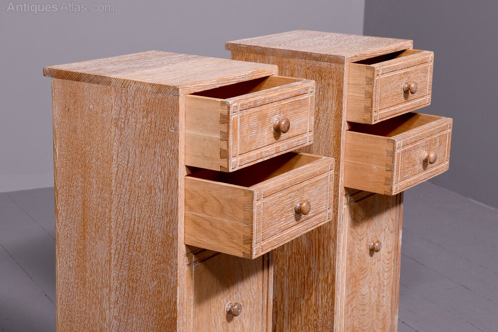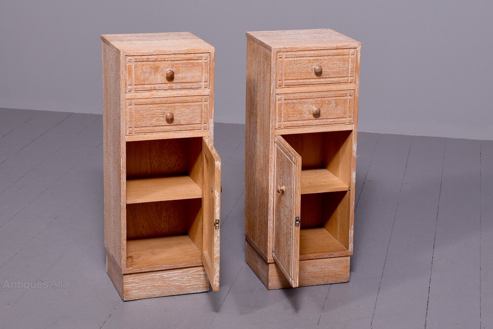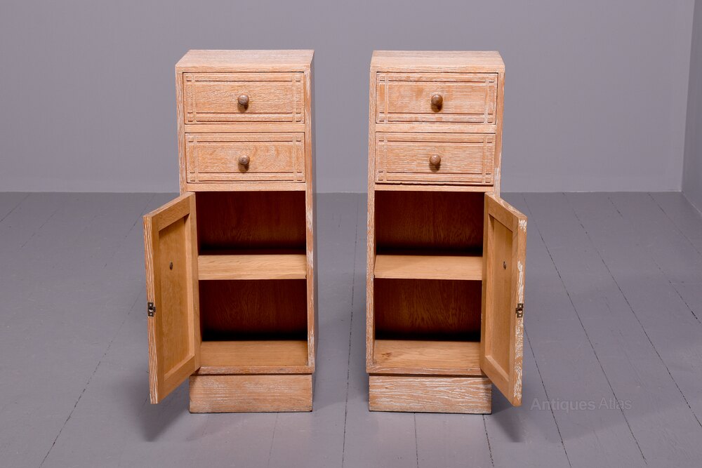 Rare Pair of Heal’s Limed Oak Bedside Lockers