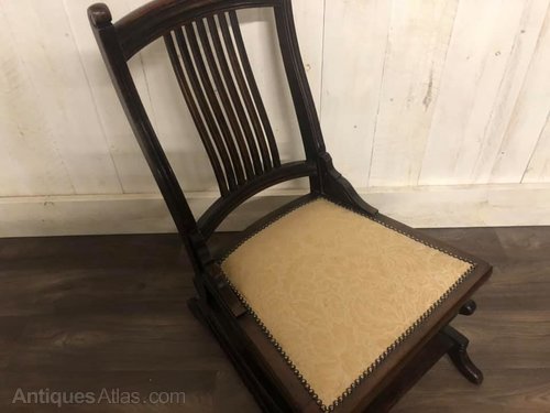 Low seat usually made like this as nursing chairs but with being a rocker makes it quite rare and we have never come across one this shape before.