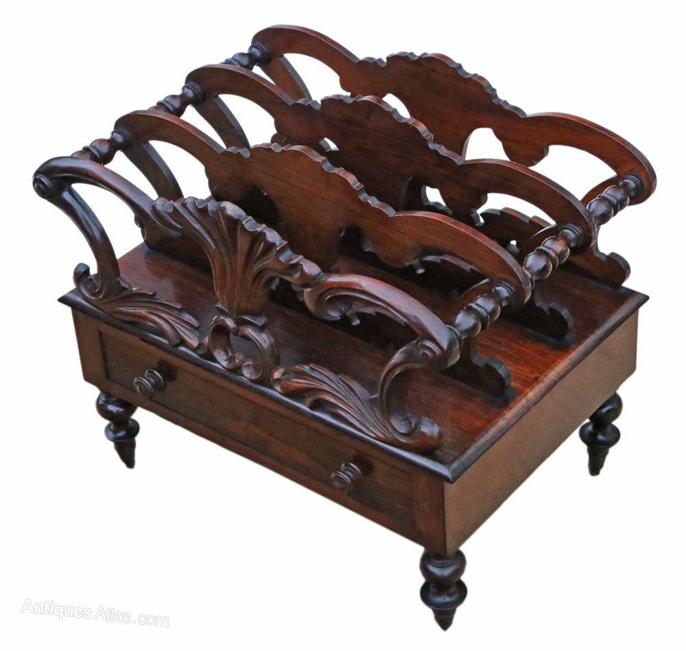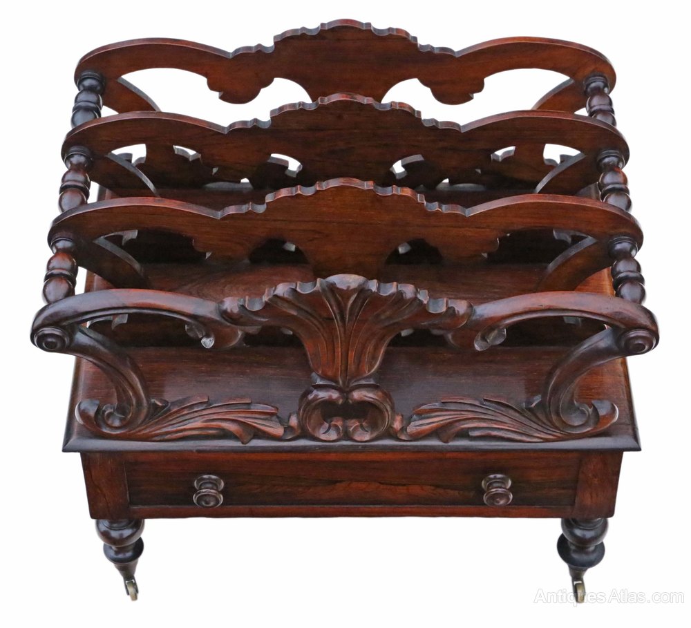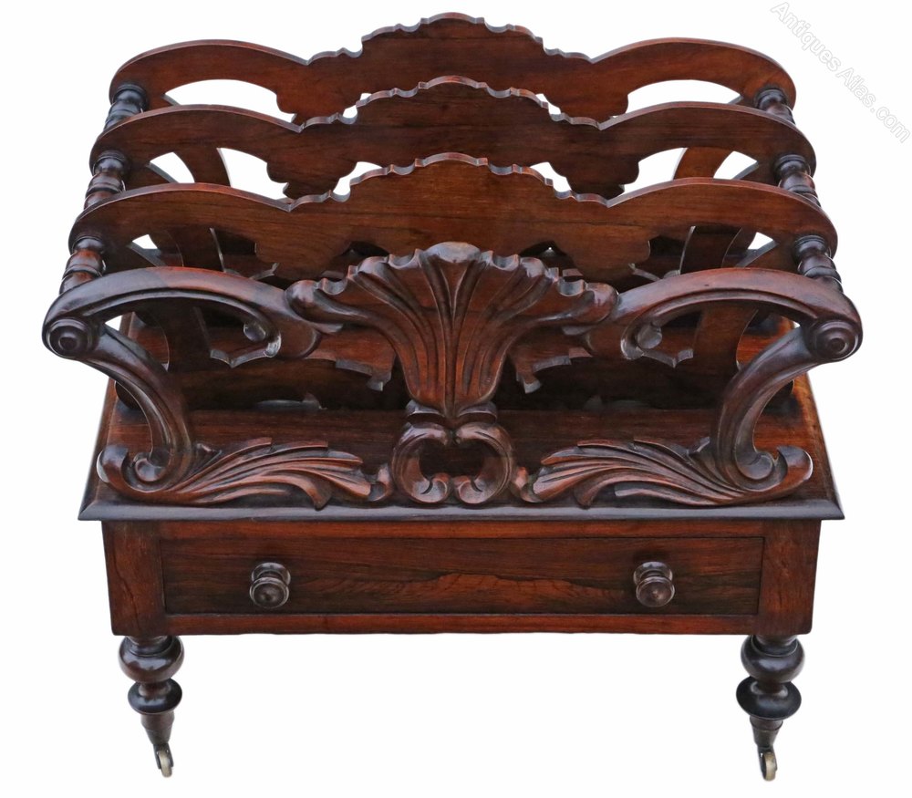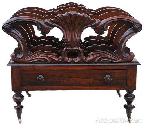 Antique fine quality Regency C1825 rosewood Canterbury magazine rack.