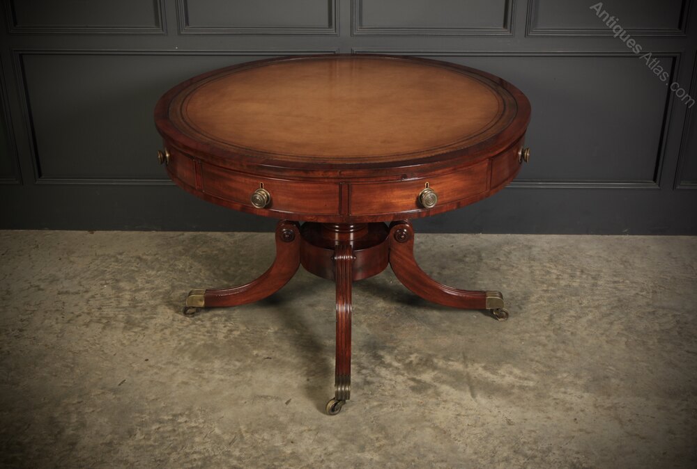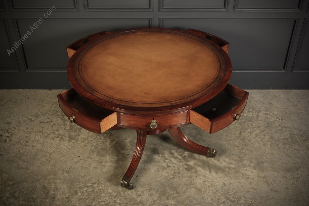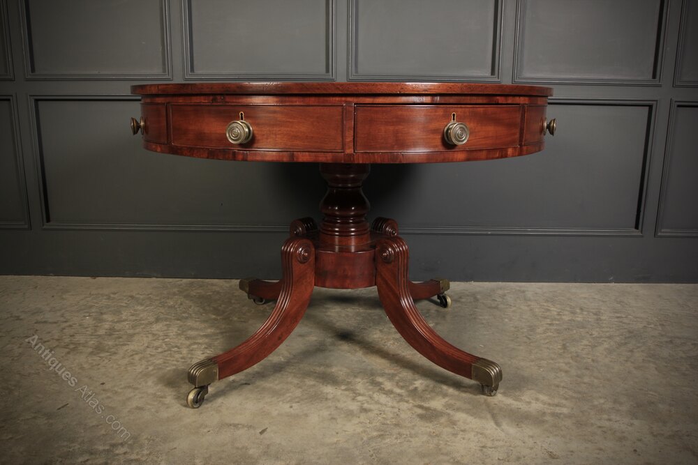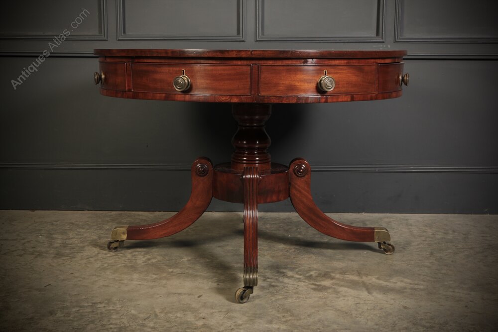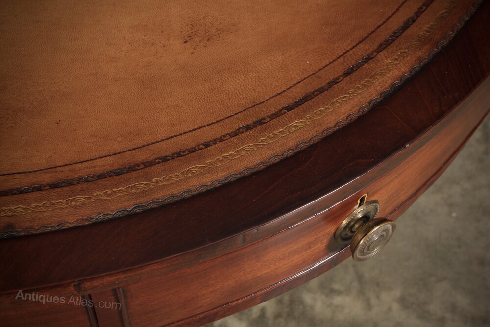 There are 4 dummy drawers and 4 functioning drawers around the frieze, with brass pull handles and cockbeaded fronts.