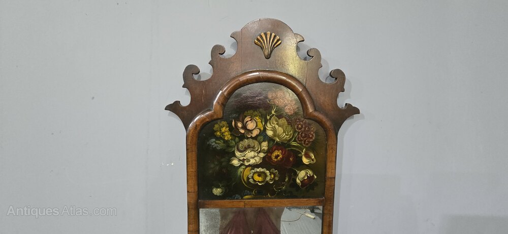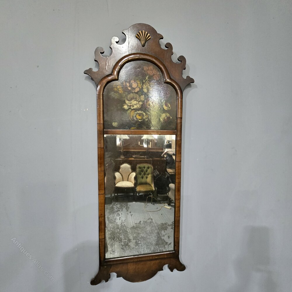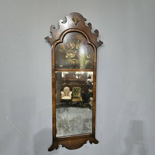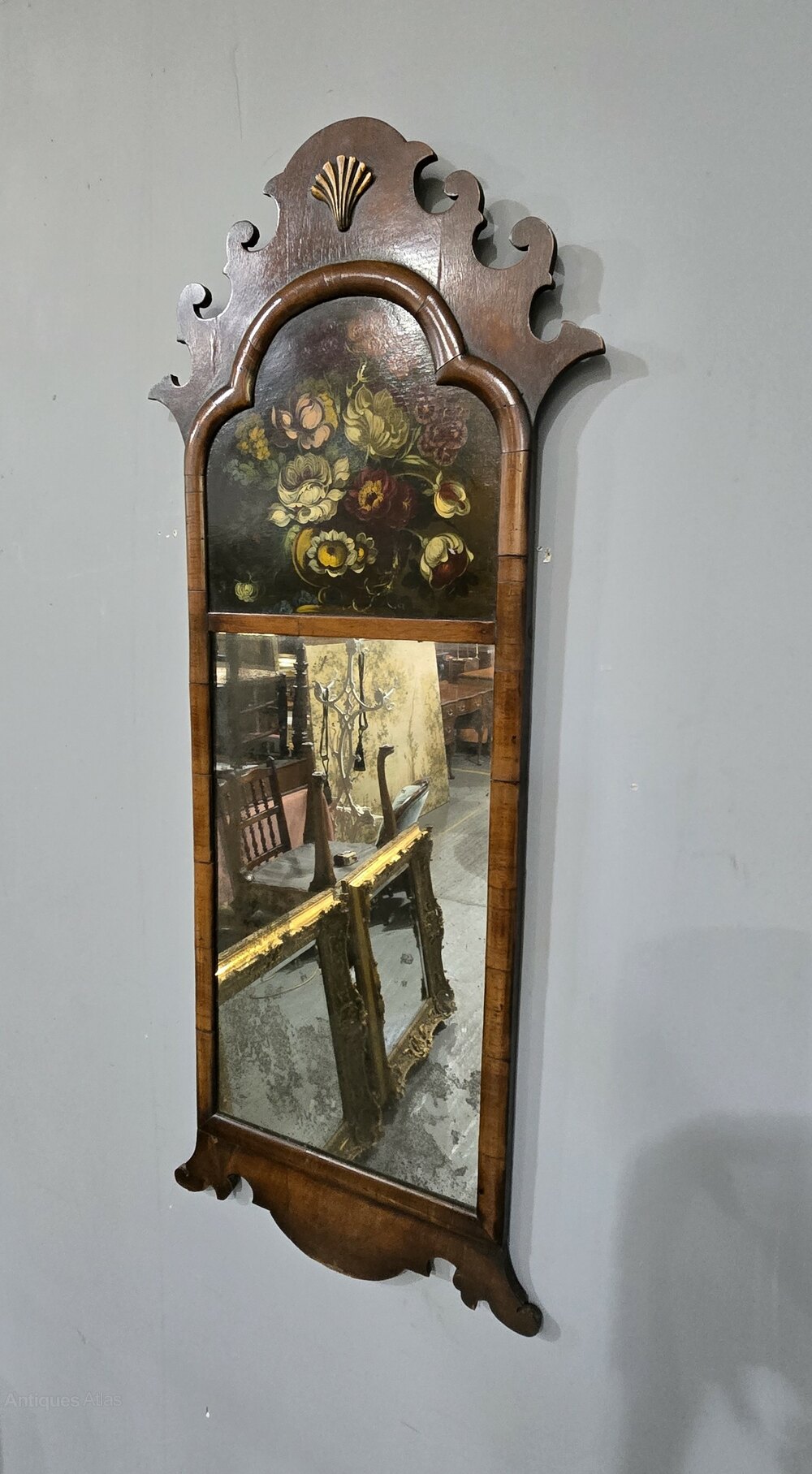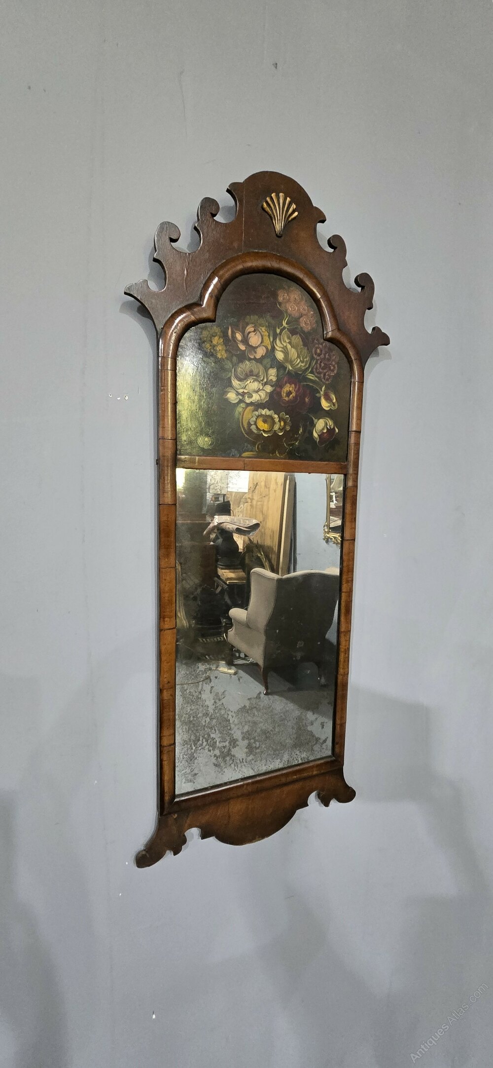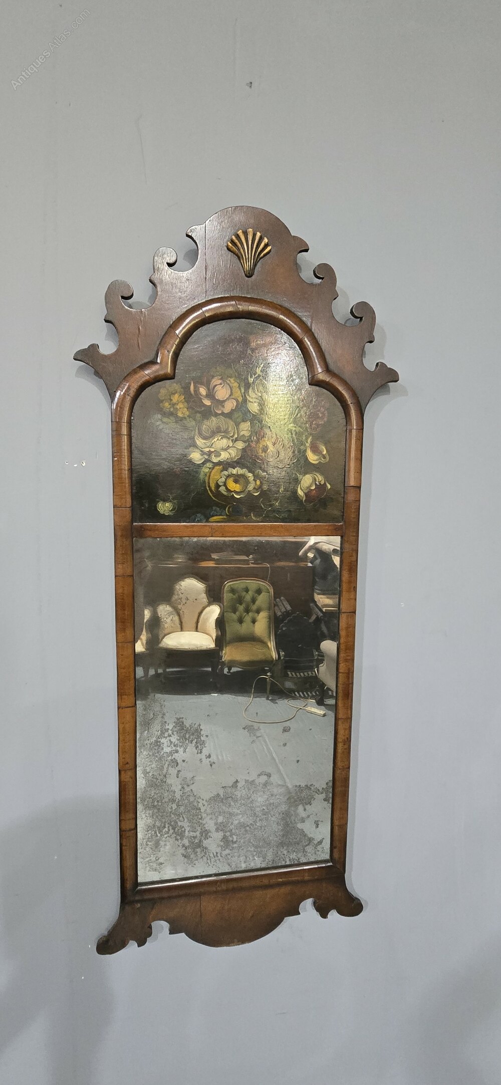 A very good Original Regency painted trumeau mirror in walnut with original mirror.
