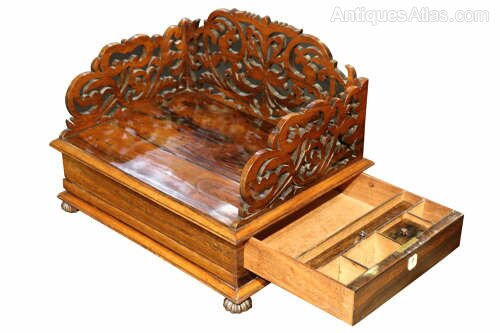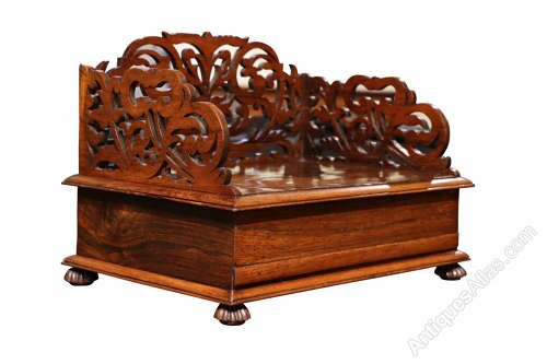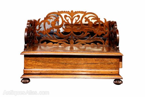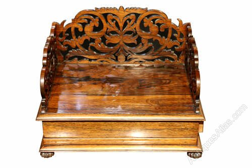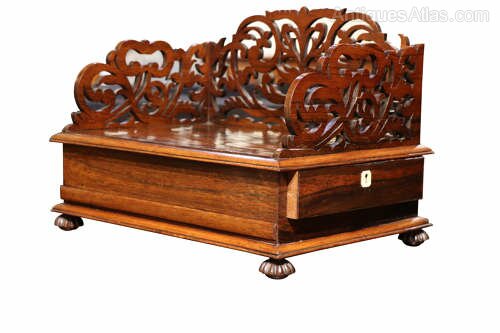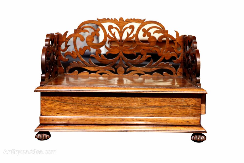 A superb Regency rosewood book/desk stand with fret carved gallery and drawer on the side