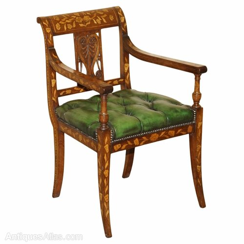 Restored 1850 Dutch Marquetry Leather Desk Chair