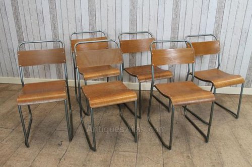 These vintage plywood stacking chairs are timeless pieces of classic and vintage industrial antique furniture.