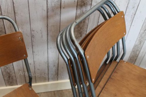 Retro Stacking Chairs With Plywood Seats Vintage