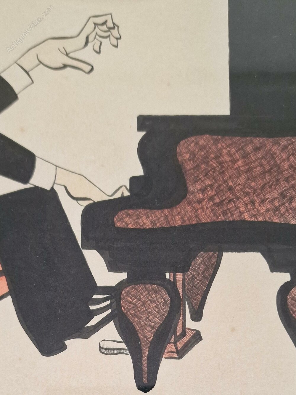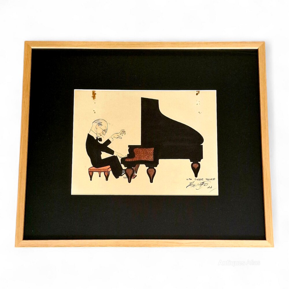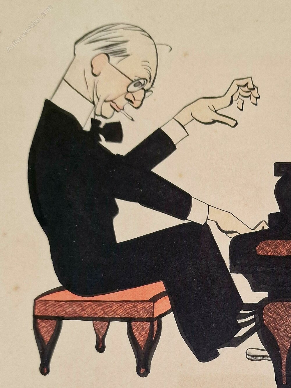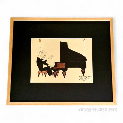 We think this caricature may well not have been seen for many years as it was found in an old style rather battered picture frame of a type used more than half a century ago. The frame had no especial charm so we have replaced it with a professionally mounted new frame which we think shows off this characterful and interesting work of art much better.
