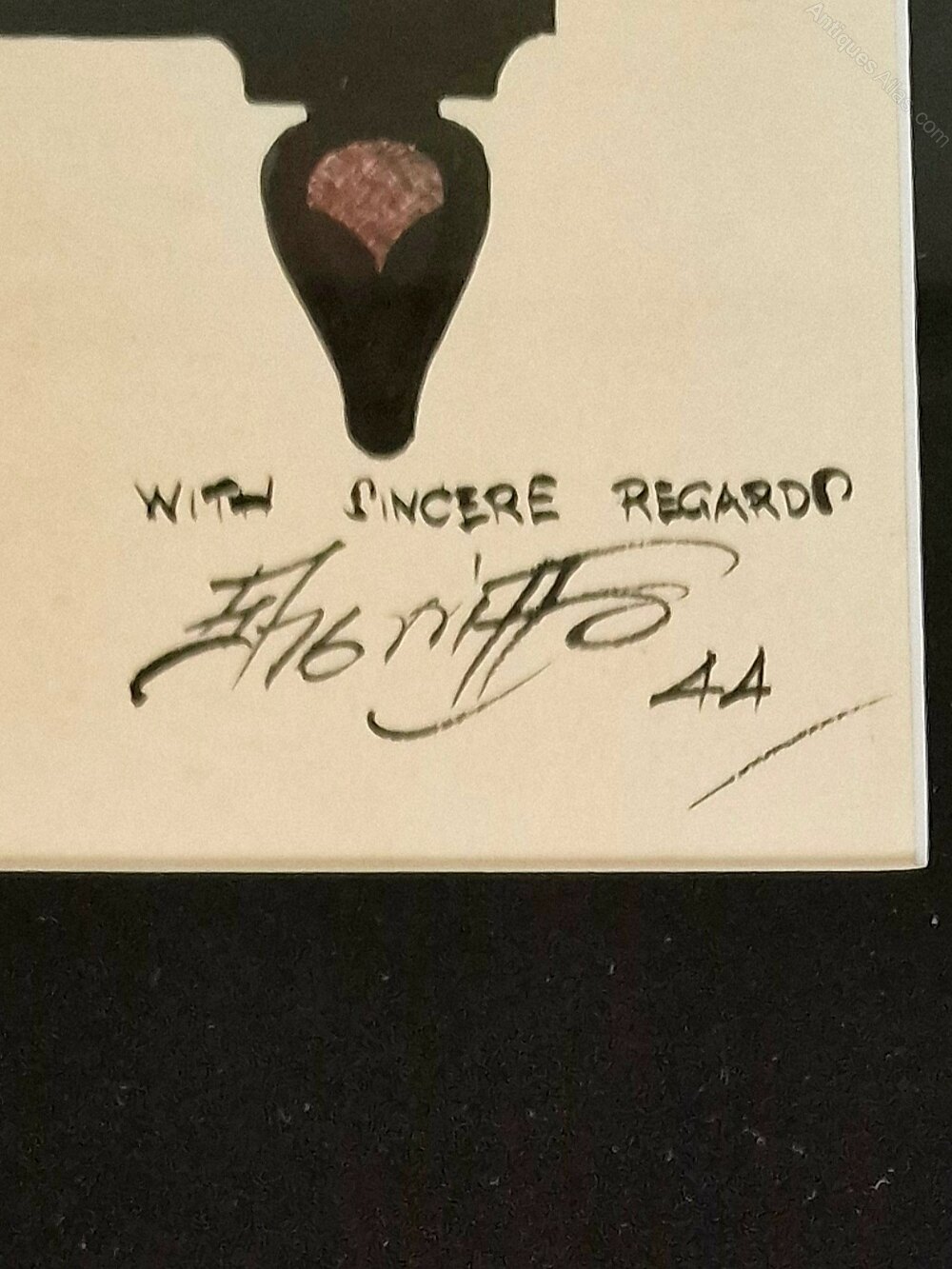 This work is an original water colour and a personal caricature given to Sir Neville in 1944 during the Second World War and signed with Robert Sherriffs’ distinctive signature “WITH SINCERE REGARDS SHERRIFFS 44” and is in that respect alone a rarity. Unusually it is fully water coloured whereas Sherriffs generally used pen and ink.