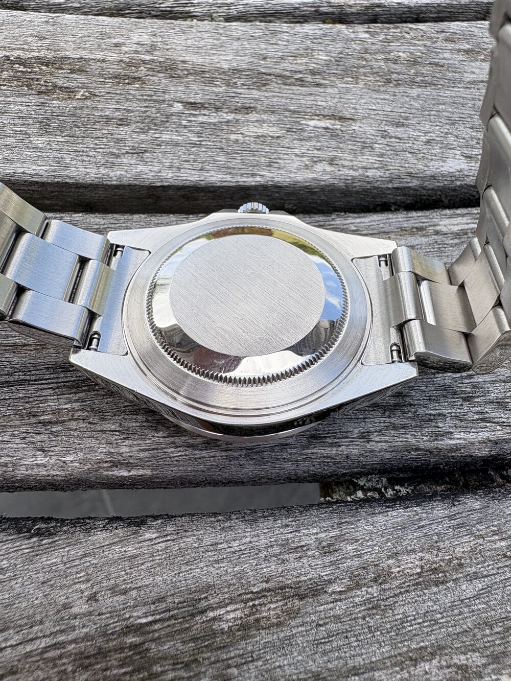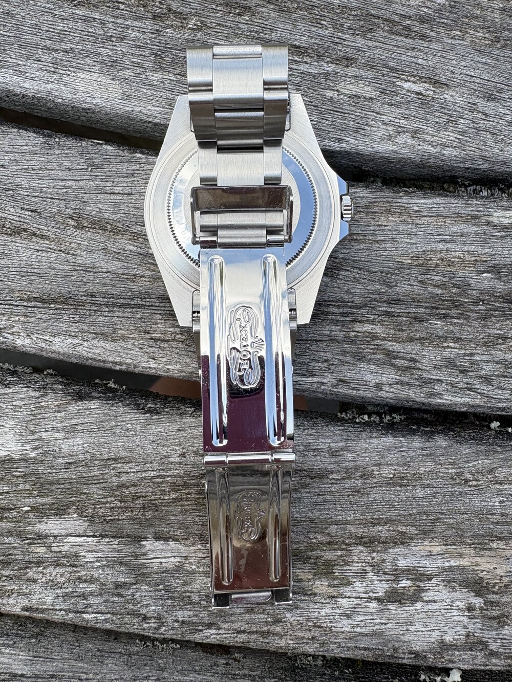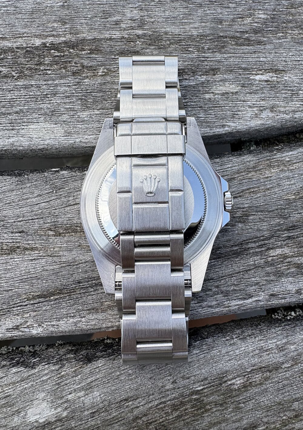 Case: 40mm brushed stainless steel Oyster case with a fixed 24-hour engraved bezel. Designed for durability and reliability in extreme conditions.