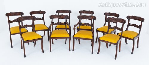 Set of 10 ( 8 + 2 ) Regency revival Mahogany Dining Chairs.