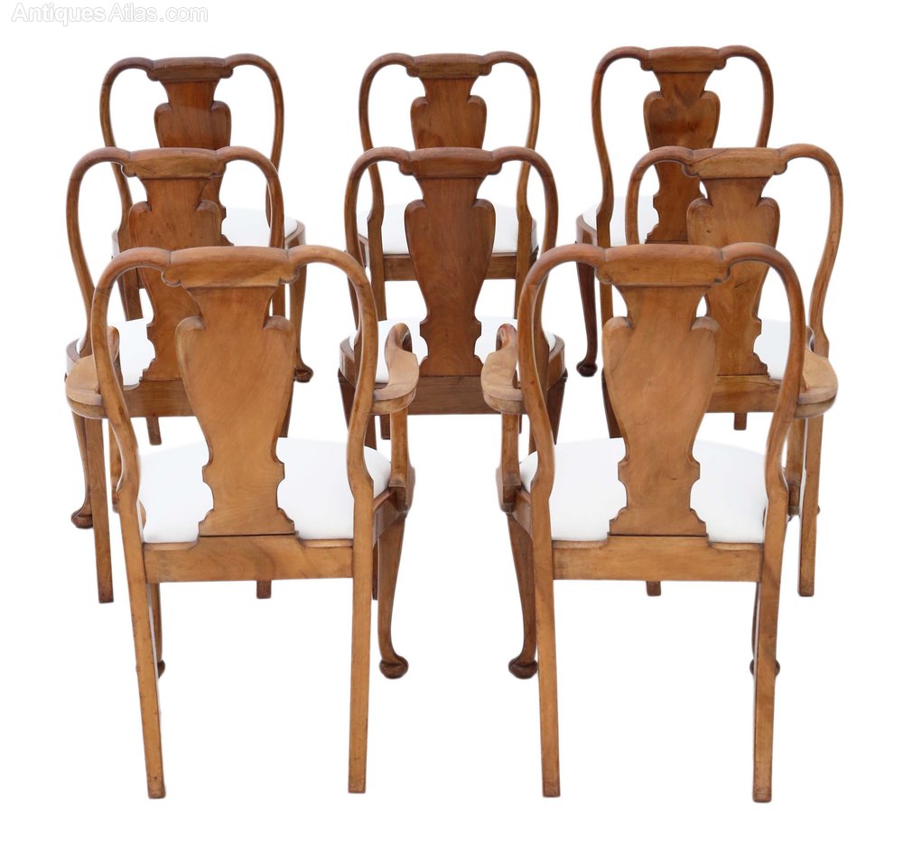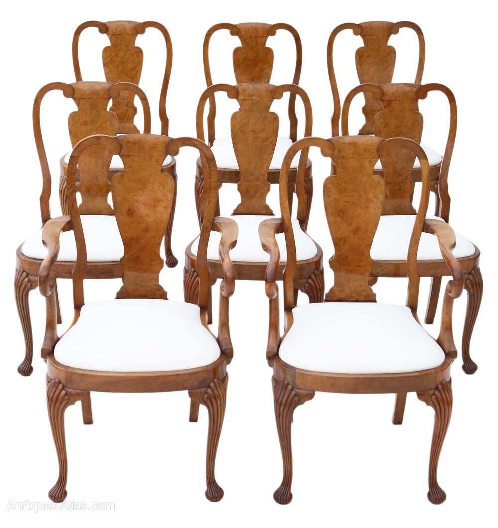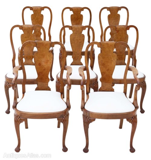 Set Of 8 (6+2) Burr Walnut Dining Chairs