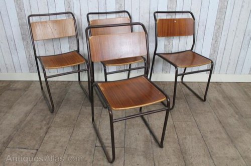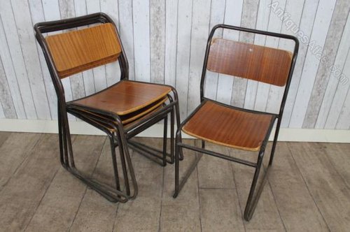 This vintage industrial set of four stacking chairs form one of our large range of stacking chairs that we currently have for sale ideal for any retro interior, restaurant, cafe etc.