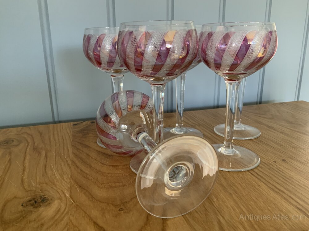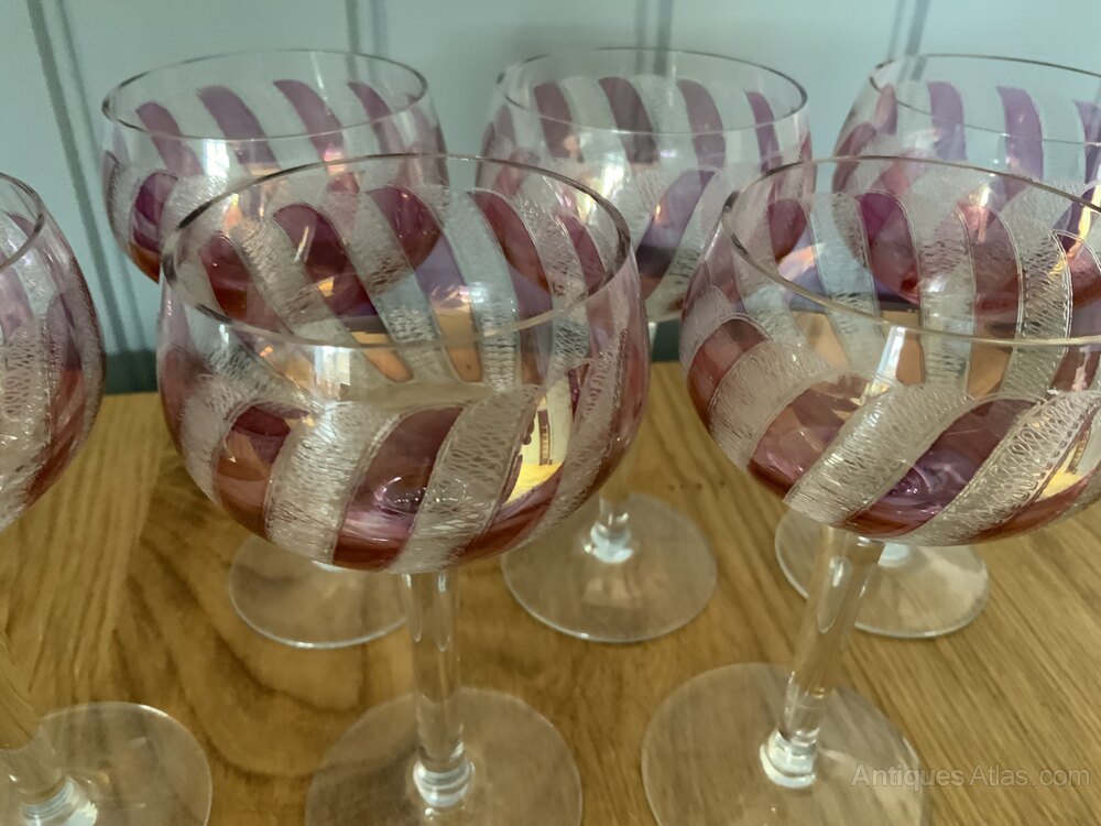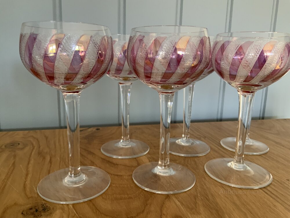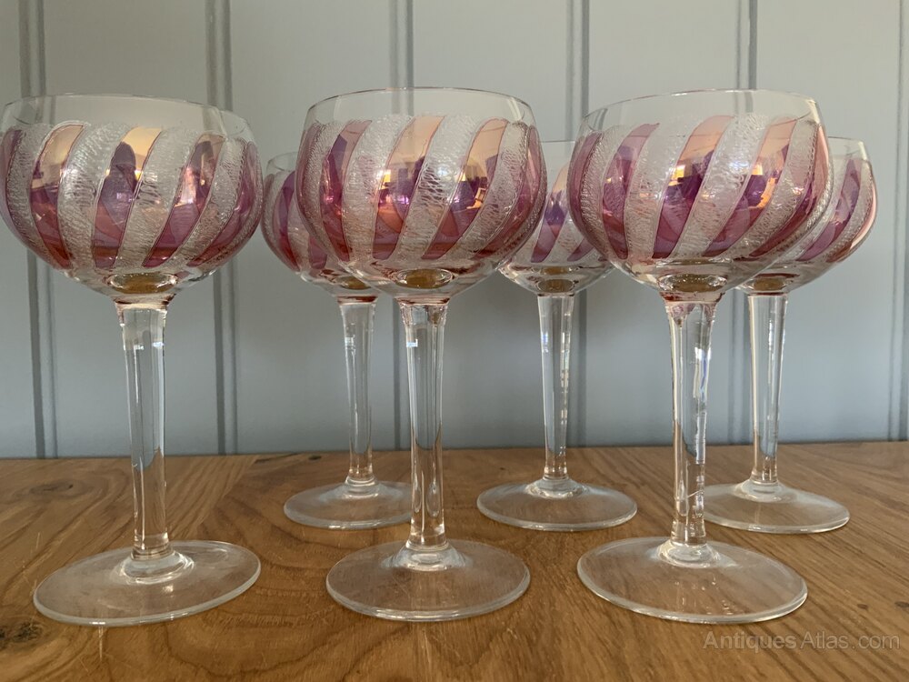 Art Deco Set of Six Strawberries and Lace Champagne Sherbert Glasses