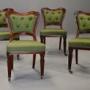 The deep buttoned backs and seats upholstered in a green water silk fabric in good condition with moulded seat rails below.