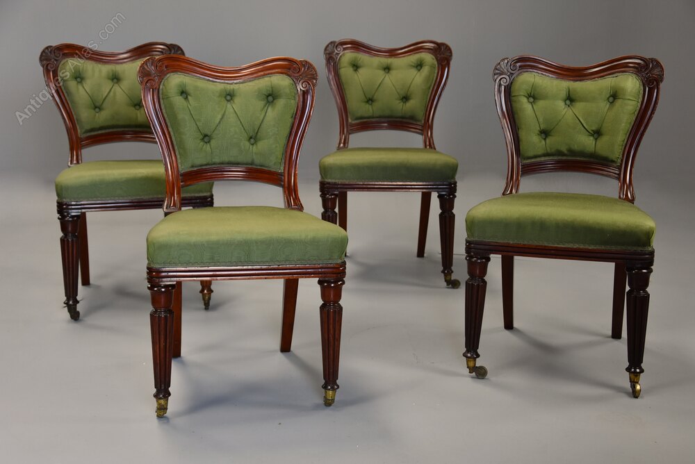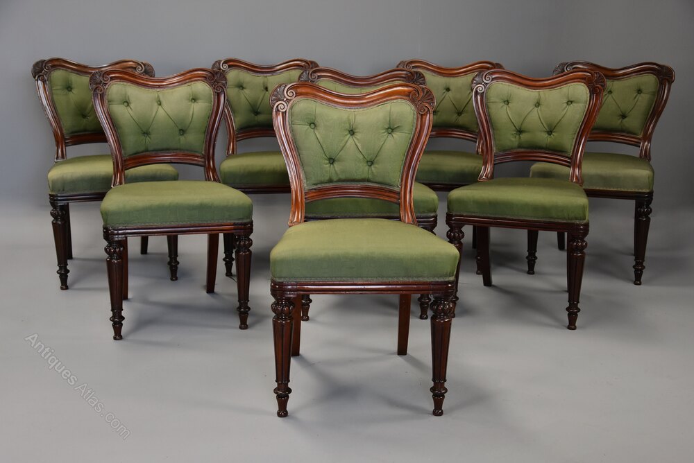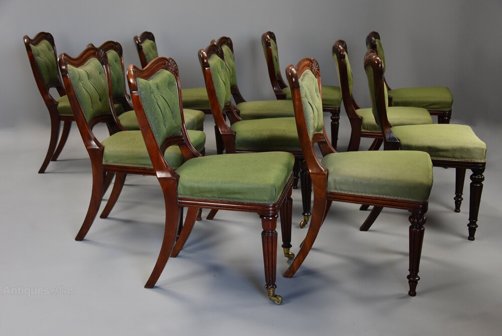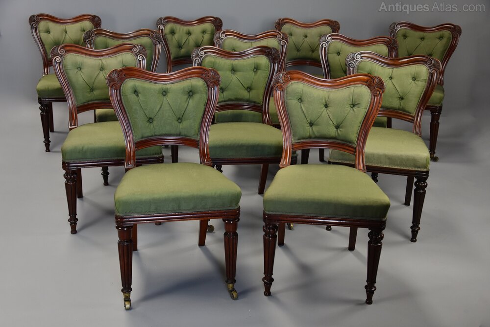 A matched set of twelve mid 19th century William IVth (circa 1830) fine quality mahogany dining chairs attributed to Gillows, all twelve chairs identical apart from the front legs of four having a slightly different design.
