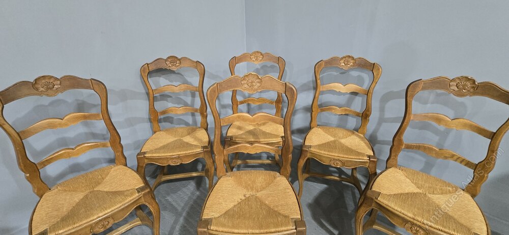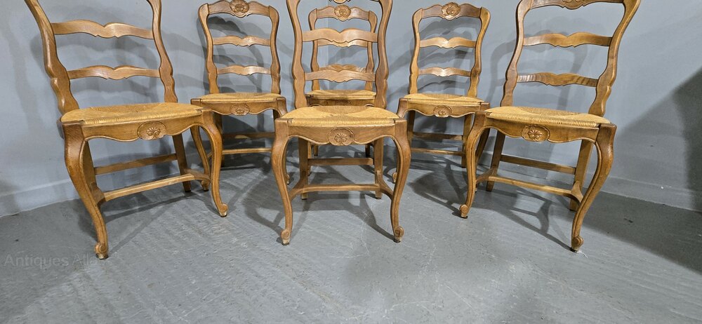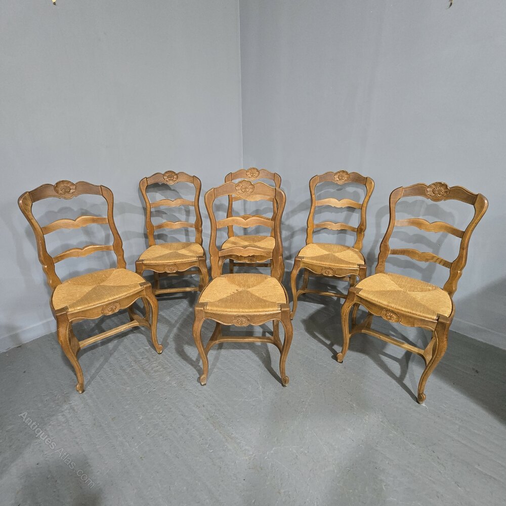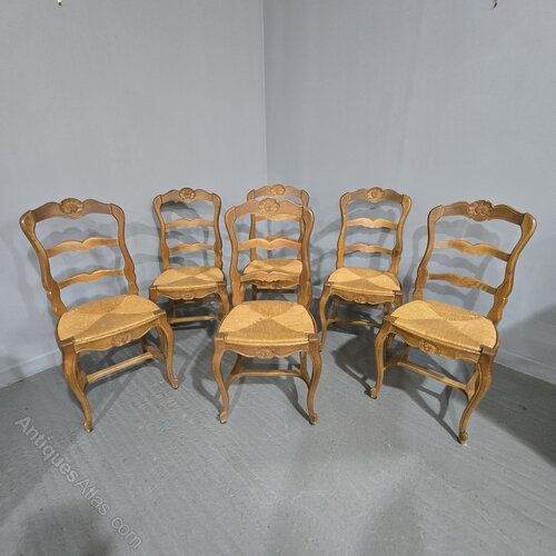 Set Six French Oak Country Dining Chairs