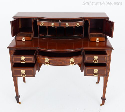 This Impressive Bonheur Du Jour Has an Arrangement of 5 Mahogany Lined Drawers to the Lower Section, The Central Drawer Being of a Bow Form.
